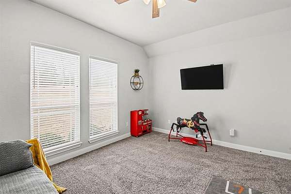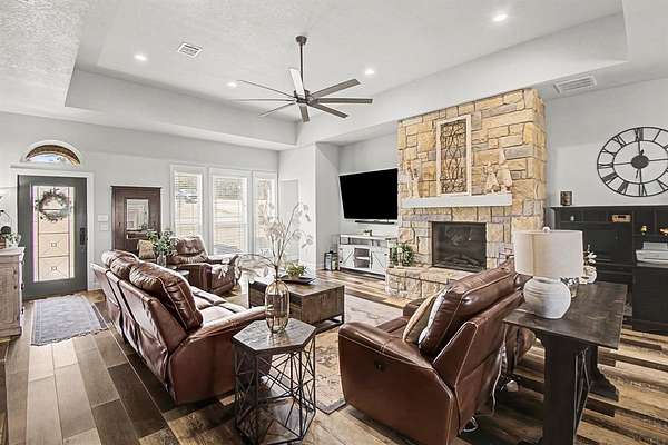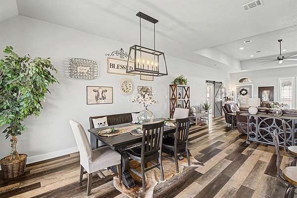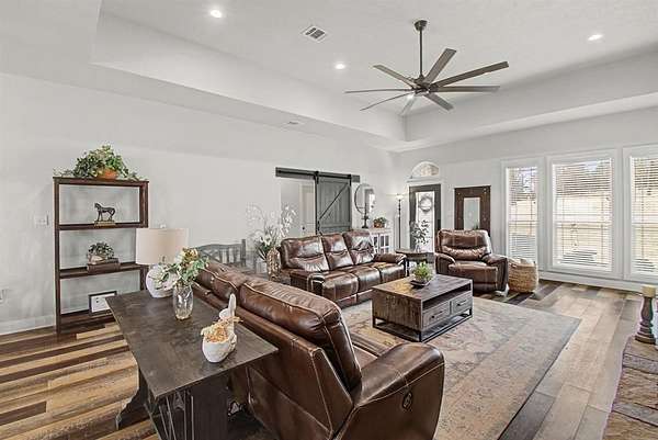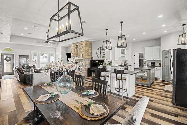 This beautifully crafted one-story custom home, built in 2018, is perfectly situated on two serene acres backing up to protected green space, offering privacy, scenic views, and a peaceful natural setting. Thoughtfully designed with quality construction and attention to detail throughout, the home blends modern comfort with timeless style. The home features four large bedrooms as well as a huge deck overlooking the two acres and greenspace. The open and inviting layout is ideal for both everyday living and entertaining, while expansive windows showcase the surrounding landscape and abundant natural light. Enjoy the rare combination of space, seclusion, and convenience in a truly special setting- where your backyard opens directly to nature and wide-open views. The private well on the property provides crystal clear water for personal as well as irrigation. The owners also added a $9,000 state of the art water filtration system from Nations Pure to ensure perfect water. The front and backyard have an excellent ground sprinkler system. Included is a large 20x24 foot insulated shop for storage or multiple uses. Another great feature is the hardwired accent lights which can be controlled remotely that offer multiple beautiful lights for all seasons. It is a system from the Govee company. This exceptional property offers the perfect retreat to call home! The location is very convenient and within 25 minutes of Denton, and 40 minutes to Fort Worth, Prosper, Frisco, and McKinney on a four-lane highway. It's an easy commute to most of the Dallas Metroplex.