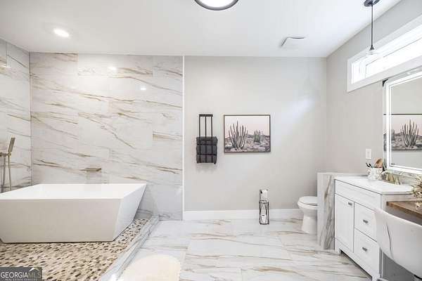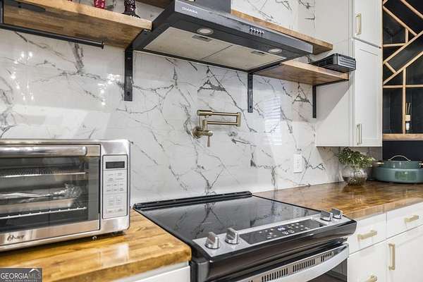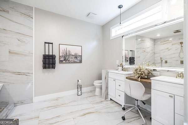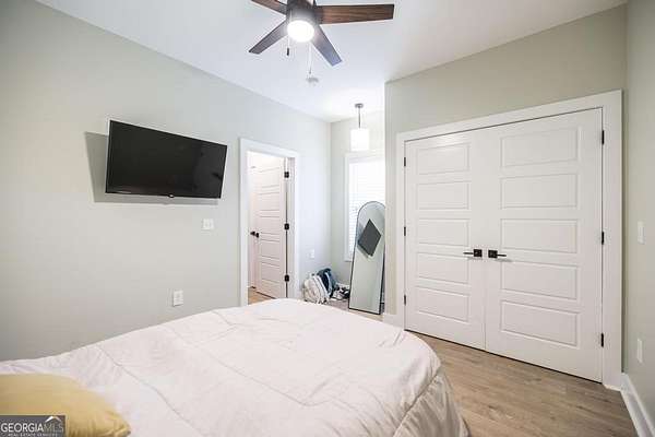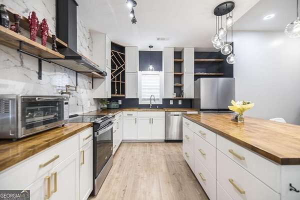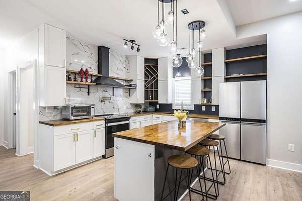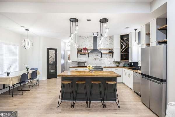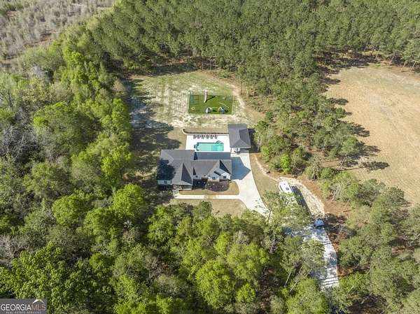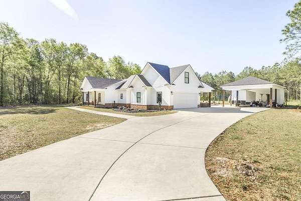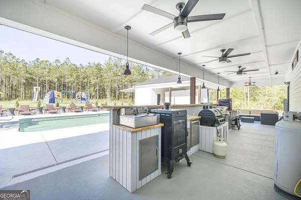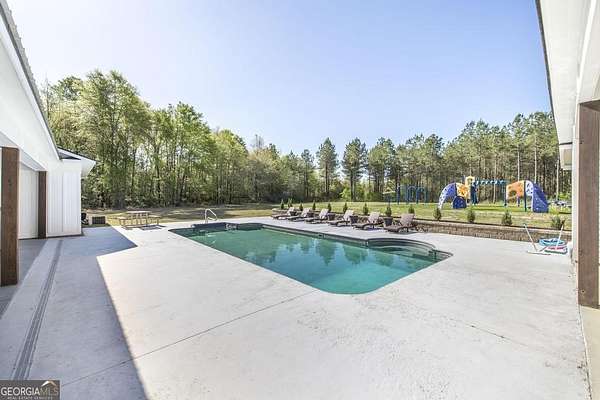 Welcome to this immaculate custom built 4 bedroom 3.5 bathroom home offering approximately 2,400 square feet of thoughtfully designed living space. The main floor features three bedrooms and two and a half bathrooms, while a private suite above the garage offers a fourth bedroom with its own full bathroom, perfect for a young adult or guest retreat. Tucked away for privacy, this home blends upscale finishes with functional living, creating the perfect space for everyday life and entertaining. The extended driveway, dedicated RV parking, and spacious two car garage set the tone for convenience. Inside, the open concept living room and eat in kitchen connect seamlessly, with warm butcher block countertops, a striking full slab marble backsplash, and a spacious walk in pantry. The primary suite is a luxurious retreat with a spa like bathroom featuring marble detailed floors, a walk in shower, freestanding soaking tub, dual sinks, and a built in vanity. Just off the primary suite, a bonus room with a dual sided gas fireplace can serve as an office, nursery, boutique style closet, or creative workspace. Outdoors, a covered patio with bar seating, ceiling fans, and lounge space leads to a sparkling pool and low maintenance turf playground, with a fully equipped outdoor kitchen for effortless entertaining. Additional features include a covered secondary garage, walk in laundry room, upgraded lighting, stylish barn doors, and meticulously maintained landscaping. This home is a rare combination of privacy, luxury, and intentional design, perfect for families, entertainers, or anyone seeking elevated living. This home is also very convenient to the interstate and shopping. Don't wait schedule your private showing today.