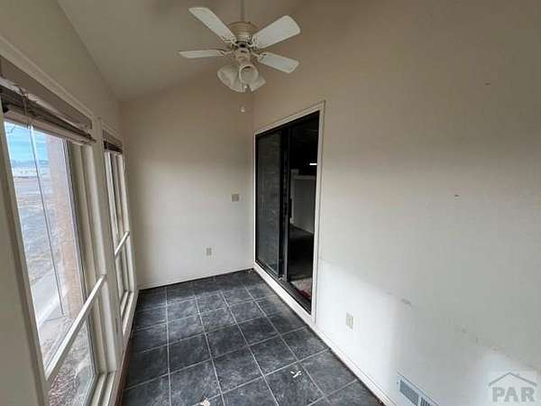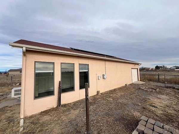 Welcome to this versatile Pueblo West ranch-style home, ideal for move-up buyers and hobbyists seeking space, function, and flexibility. The home offers four spacious bedrooms, an interior flex room in the basement, and 2.5 bathrooms, with a main-level primary suite and main-level laundry for everyday convenience. Two enclosed sunrooms at the front of the home provide passive solar and would be great for indoor gardening. The living room features a gas fireplace for cooler Colorado days, while central A/C ensures comfort in the summer. New efficient windows were installed in 2023. The lower level includes a large recreation room, two additional bedrooms, and a 3/4 bath, offering excellent space for guests or multi-use living. Outside, enjoy an adobe-style fenced patioand access to the first detached two-car garage. Beyond a second gated area is a chicken coop/shed and the standout feature: a detached four-car garage/shop with a partially finished interior space ideal for a workshop, office, or creative use. This structure is powered by owned solar, adding long-term value and efficiency. The property continues into a large field, completing the 2.6-acre parcel and offering room to expand, create, or simply enjoy the open space. This is a property best experienced in person.