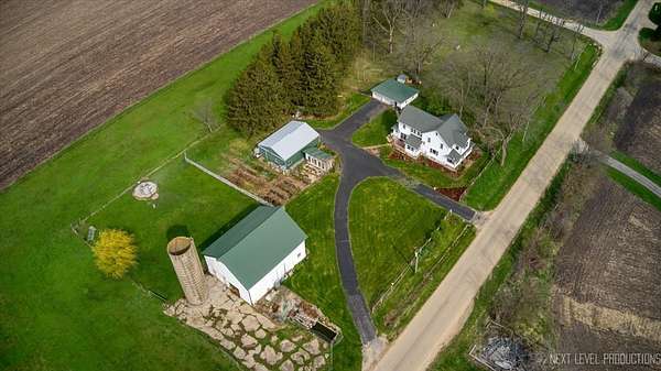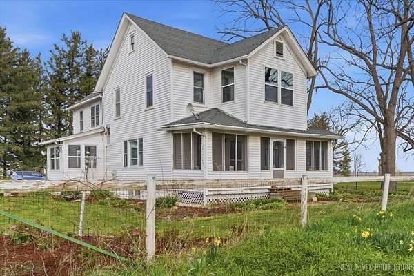 Welcome to Fairview Farm-a timeless 1914 farmhouse set on 5 picturesque acres. This spacious home offers 2,586sf of living space featuring 5 bedrooms, 2 full baths, beautiful hardwood floors, and charming vintage doors and hardware throughout. Enjoy peaceful mornings on the classic screened front porch or entertain guests on the brand-new deck just off the dining room. A full basement provides abundant storage space. The property is well-equipped for both lifestyle and hobby needs, with a 2-car detached garage PLUS an additional 6-car detached garage ideal for vehicles, equipment, or workshop use. A large barn, fenced pasture, chicken coop, and a tranquil fish pond complete the rural setting. Currently zoned Ag-1, this property is perfect for those seeking country living with modern convenience. Located on a paved road just north of Route 72 and only 10 minutes from I-90, this property offers easy access to Rockford and Chicago. Schedule your showing today!