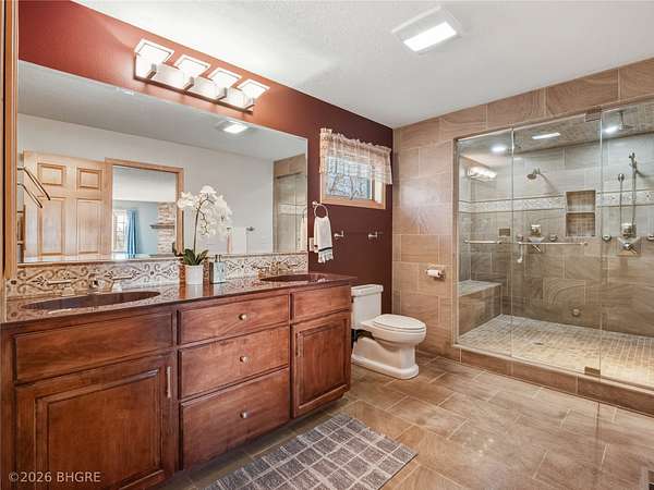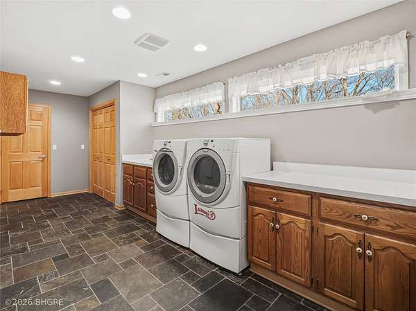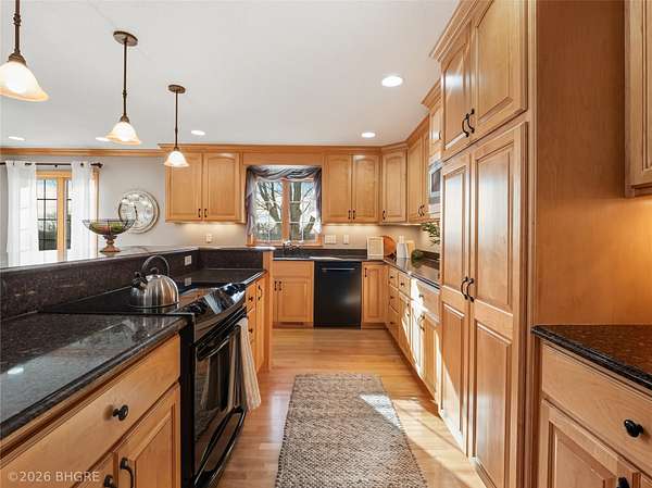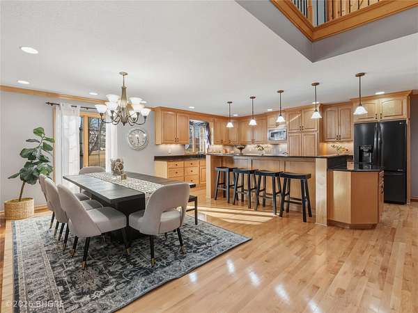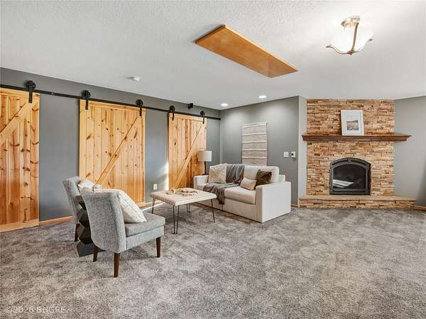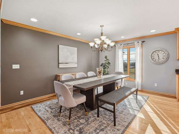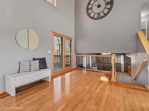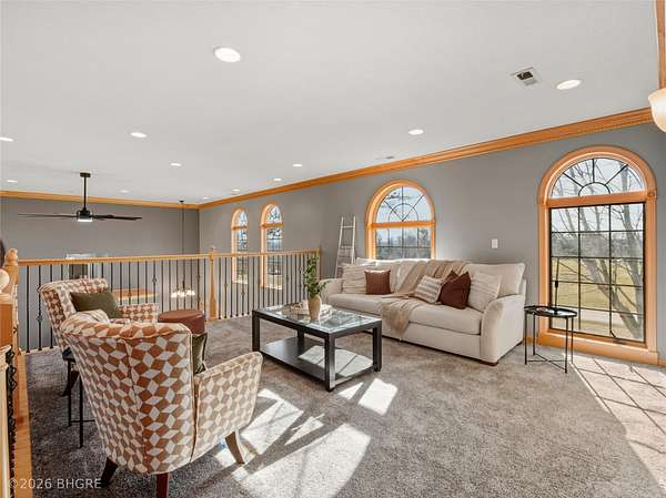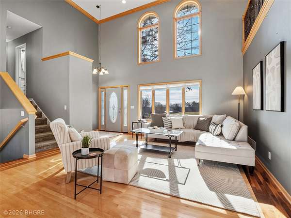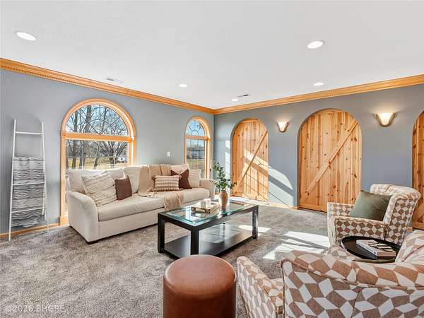 Welcome to your private retreat in Runnells! Nestled on over 3.5 acres along Vandalia Road, this 4-bedroom, 2 1/2-bath home offers more than 3,500 sq ft of living space with a perfect flow for entertaining and all on a hard-surface road. The expansive living room sets the stage for gatherings, flowing into the massive custom kitchen with premium cabinetry and countertops. Upstairs, the master suite retreat boasts a spa-inspired bath, large walk-in closet, and access to a cozy loft living area, an ideal spot to sip your morning coffee while gazing through arched windows at the peaceful countryside. The lower level features a spacious family/game room perfect for a pool table or watching the big game. Additional perks include extra garages on site, offering plenty of space for workshops, hobbies, or even your own chicken coop setup. With thoughtful design, abundant storage, and space inside and out, this home blends elegance, comfort, and rural freedom.
