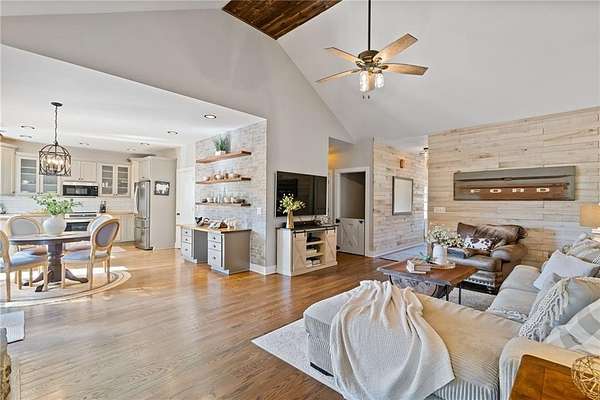 Step inside to discover an updated home from top to bottom with two full levels of living! The main floor features hardwood floors, a vaulted family room with a stone fireplace, charming shiplap accents, and a spacious primary suite with a fully renovated bathroom and a professionally designed walk-in closet. Two additional guest bedrooms share an updated guest bath*The finished basement offers incredible flexibility with two oversized multi-purpose rooms--perfect for a media room, playroom, gym, or second family room. You'll also find a guest bedroom, a renovated full bath, a bar area (that easily be turned into a kitchen if desired), and an unfinished workshop/storage room with a built-in workbench*Outdoor living shines here: a wide covered front porch spans the entire length of the home, while a full rear deck offers both open-air space and a vaulted, covered section with a tongue-and-groove ceiling--an ideal spot for watching the game or savoring peaceful country evenings. Beneath the deck, a concrete pad provides convenient storage for outdoor equipment***