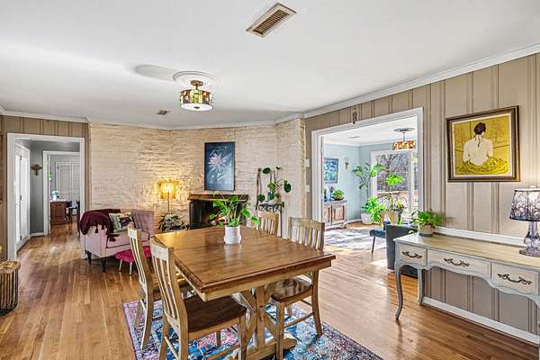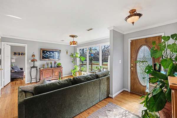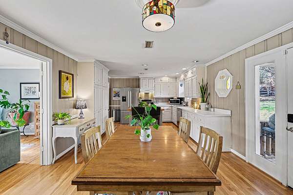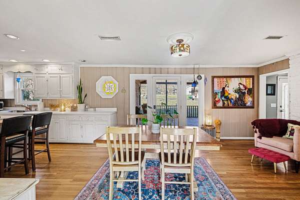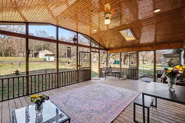 Mid‑Century Modern ranch with warm, cozy vibes and abundant natural light — a true retreat on 1.7 acres. Thoughtful design and character-filled details create an inviting living experience, with indoor-outdoor flow centered around a spacious, covered porch directly off the kitchen — perfect for morning coffee, small gatherings, or quiet decompression while communing with nature. We recommend lingering during your showing — sit, soak it in, envision and feel the calm and serenity this home provides.