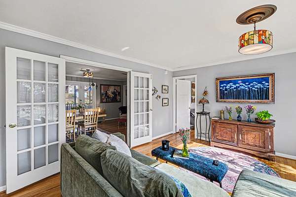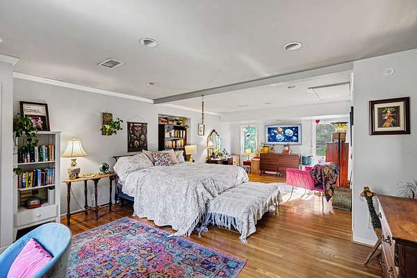 Bright, open living spaces capture mid‑century charm while offering comfortable, practical flow for everyday life. Ample parking and storage complement the property’s creative opportunities.