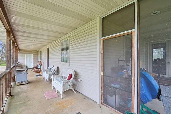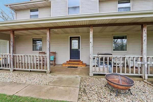 Fisherman's Paradise! Fully stocked pond/lake w/private island. Large 2 Story home w/gorgeous wrap around front porch. Extra big 3 car (4 tandem) attached garage w/attic storage. Supersized kitchen w/breakfast bar, pantry. Main level family room (w/fireplace) & separate living room. Formal dining room plus a dinette area. Bedrooms plus cozy reading nook/loft area on 2nd floor. 2nd floor laundry room conveniently located near bedrooms. Large master bedroom suite w/separate shower w/double shower heads, big jetted tub. Knotty pine rec room/office in basement w/lots of square footage left to finish. Roughed for 4th bath. Beautiful 5 stall horse barn (24x36) w/ concrete floor & extra tall garage doors at each end. Trails throughout the 18.75 acres. Gorgeous property!