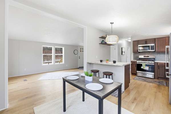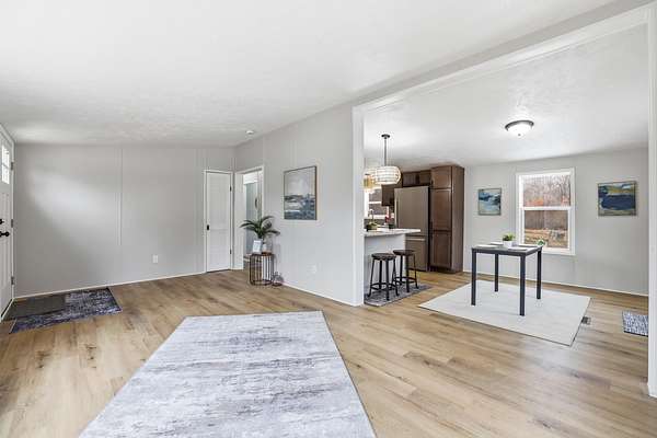 * New Roof * 4 Acres * Beauitfully Updated * Welcome to main level living just off the beaten path! (Might map as ''E Moore'') The kitchen boasts new: Williams Kitchen & Bath soft-close cabinetry, stainless appliances, and custom countertops with tile backsplash. New LVP is throughout the main spaces and new carpet in the bedrooms. Enjoy a master suite with double closets and a large en suite bathroom with: new vanity with marble countertop, new mirror+fixtures, new shower+surround, and loads of storge space. The main bath has also been updated with new vanity, fixtures, and finishes. There are also new front and side exterior doors and all new craftsman style solid core interior doors with new knobs/hinges/hardware. Upgrades, updates, and careful design are found throughout in the lighting and other finishes as well. The property has great spots for the new home owner to build their dream garage or pole barn, hobby farm, garden, deer stand, ATV track, or other personaliz space!