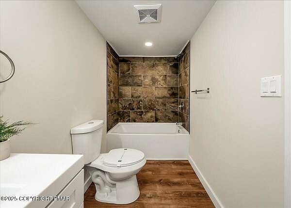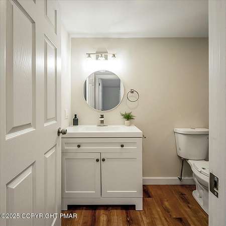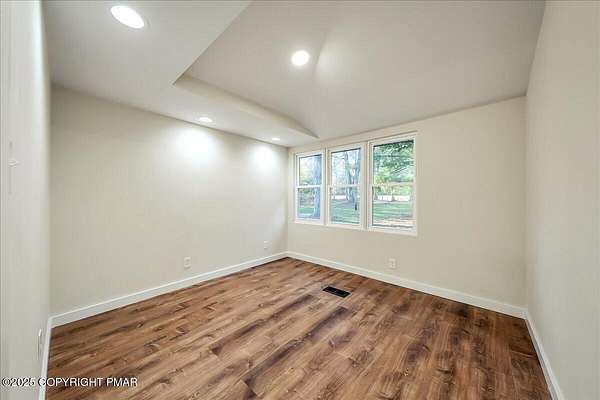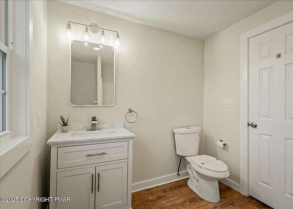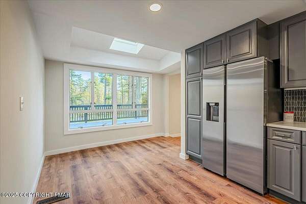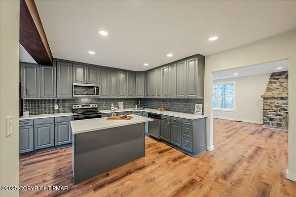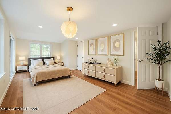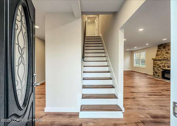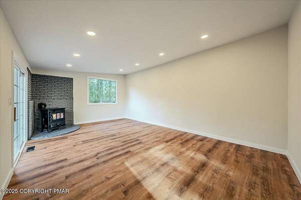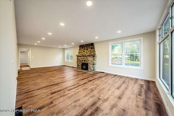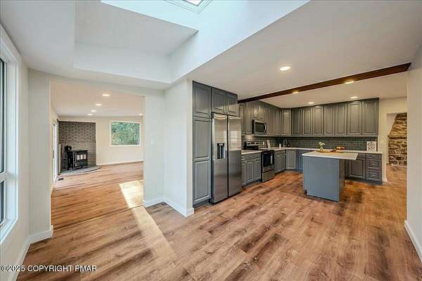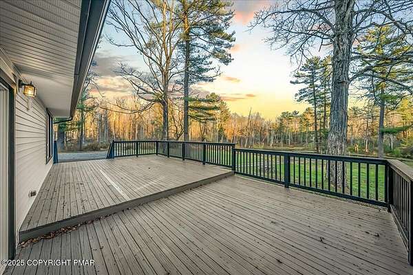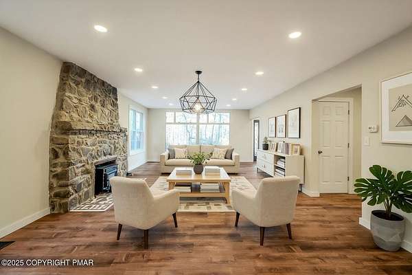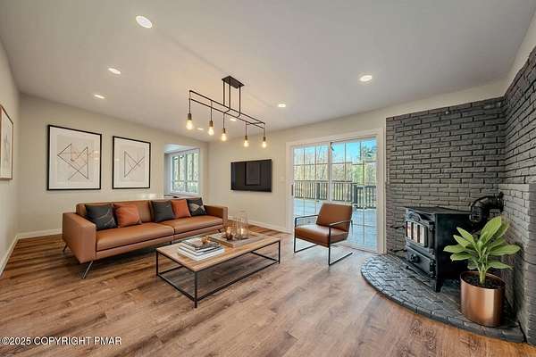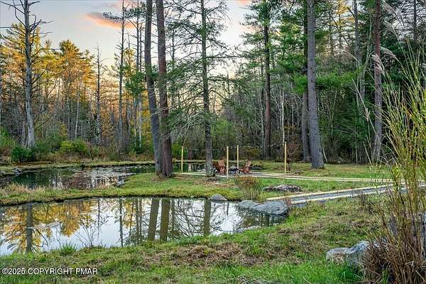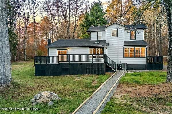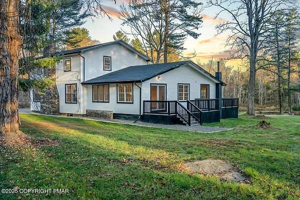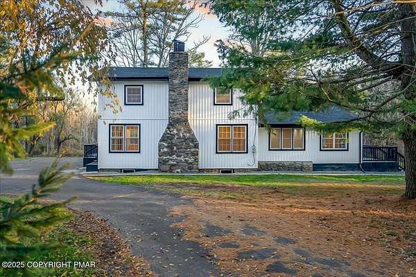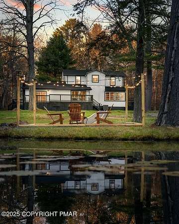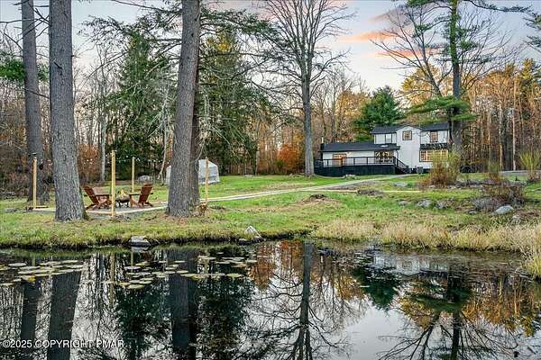 Do not wait to see this completely renovated short-term-rental-friendly stunner set on nearly two acres with two private ponds and unforgettable sunset views. This Clifton Township property is a standout opportunity for investors or anyone seeking a move-in-ready Pocono retreat. Every inch of this home has been reimagined with high-end finishes and modern upgrades, offering the perfect blend of style, comfort, and functionality. Inside, find luxury vinyl plank flooring throughout, a show-stopping stone fireplace in the living room, spacious dining room with wall-to-wall windows and family room with wood stove and sliding doors leading to the expansive back deck. The chef's kitchen boasts sleek gray cabinetry, a designer tile backsplash, stainless steel appliances, and a large island ideal for entertaining. The massive first-floor primary suite includes a custom walk-in closet system, while an additional first-floor flex room offers potential for a game room or extra sleeping space. Upstairs, four more bedrooms (including two with private en suite baths) provide the perfect setup for large groups or STR guests. Outside, a front porch, large back deck, and fire pit area overlooking the ponds make the most of the property's serene natural setting. Conveniently located just minutes from I-380, Gouldsboro State Park, and less than 30 minutes from Mount Airy Casino, Kalahari Resort, and The Crossings Premium Outlets, this home is a rare find. Homes this special don't last - schedule your private tour today!
