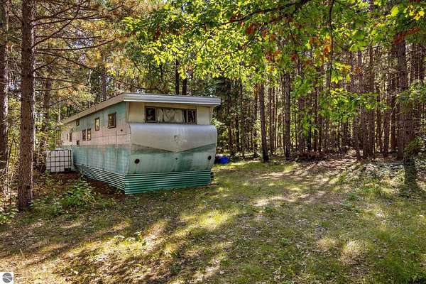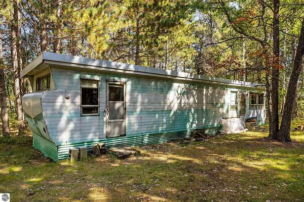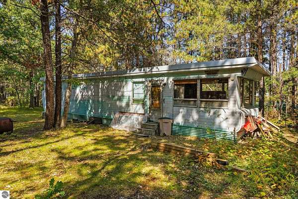 Welcome to 794 E M-72 in Grayling, a 5-acre heavily wooded parcel offering privacy, nature, and potential. The property stretches deep from the road and backs up directly to state lands and trails, creating a long, narrow footprint that feels tucked away while still providing direct frontage on M-72. Nestled among the trees sits a rustic 1957 mobile home/hunting trailer that has recently been refreshed with a new metal roof, new sub flooring, and new carpet throughout. Whether you're seeking a simple up-north getaway, a hunting camp, or a site to build your future home, this parcel offers versatility and value. Being sold As Is, this property is ready for its next chapter in the hands of someone with vision.