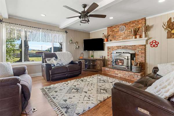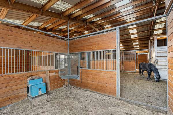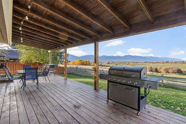 Exceptional Small Ranch on 11.335 Acres - Corvallis, Montana. Experience the perfect blend of comfort, functionality, and breathtaking Montana views with this beautifully maintained small ranch in the heart of the Bitterroot Valley. Set on 11.335 irrigated acres, this property offers a spacious 3-bedroom, 2-bath home with a bonus/flex room and approximately 2,000 sq ft of living space. The home features a remodeled kitchen (2017) with granite countertops, modern cabinetry, and an open layout ideal for entertaining. A cozy wood-burning stove warms the family room, while large windows capture stunning views in every direction. The primary suite was remodeled in 2020 to include a beautiful walk-in shower and updated finishes. Other recent updates include new bedroom flooring (2020), a new roof (2017), and a geothermal heating/cooling system for year-round efficiency. The home also includes a reverse osmosis water system for pristine drinking water. Outside, the property is fully landscaped with curbing added around the home for flower beds (2023), providing a polished and welcoming exterior. The ranch is exceptionally equipped for livestock or horses with approximately 15,000 sq ft of covered and enclosed outbuildings, each with electric, lighting, and water. The barns include individual stalls and storage space. Structures include: - Shop/Arena: approx. 88'x120' garage/shop/equipment and hay storage/indoor arena with windows for fresh air - Barn 1: approx. 36'x32' (2 large foaling/breeding stalls and storage) - Barn 2: approx. 39'x36' - Barn 3: approx. 1,185 sq ft with six stalls, tack area and storage - Chicken Coop: approx. 10'x17' - Utility Shed: approx. 395 sq ft with bump-out - Insulated and heated large dog house Each barn is equipped with electric service, lights, auto waterers, and spigots-making daily chores efficient and convenient. Property is irrigated with an underground line and risers, (5 big sprayers that are included) ideal for pasture or hay production, yielding approximately 20 tons of weed-free grass hay annually. New fencing has also been added, enhancing both function and aesthetics. Willow Creek flows through the northeast portion of the ranch, creating a peaceful wildlife corridor and wetlands area that attract native species. To the north, the property borders 110 acres protected by a perpetual agricultural conservation easement, ensuring privacy and preserving your panoramic views. Enjoy 360 degree views; scenery of the Bitterroot and Sapphire Mountains, open ranchland, and Willow Creek drainage-all protected by covenants that maintain the natural beauty of the area. This Corvallis property offers the perfect mix of rural tranquility, thoughtful infrastructure, and modern comfort-a true Montana gem.