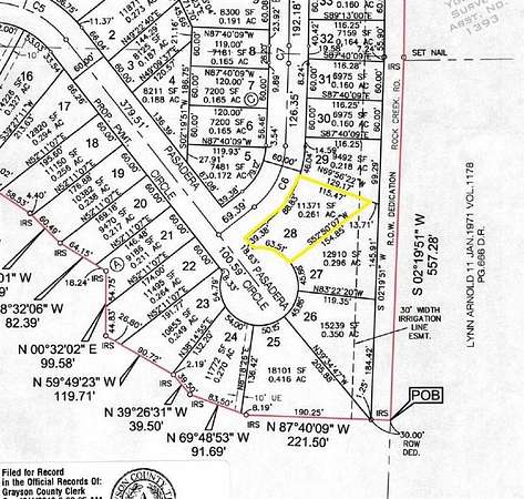 Centrally located in Rock Creek, Pasadera is one of the largest subdivisions, featuring a rolling terrain with some excellent views. Rock Creek is a picturesque 1,300-acre resort located on the shores of Lake Texoma. This particular lo is a flat, corner lot at the entrance to a cul de sac with some extra space and ready for construction. The community is rapidly growing, with an increasing number of new homes and lot purchases. Residents enjoy a range of amenities, including a community pool, restaurant, clubhouse, tennis and pickleball courts, and a fully equipped fitness center with both cardio and weight machines. The price also includes a membership to the Rock Creek Golf Club. There is no required build date, allowing you flexibility. The community is home to a breathtaking Nicklaus-designed golf course, ranked19th in Texas by Texas Outside. Additionally, the onsite marina offers boat rentals, slips, and guided fishing trips. The top-rated Cross Timbers hiking trail runs through the community, and the gated, 24-hour security ensures peace of mind. Golf membership is just $100 per month and includes six rounds of golf!