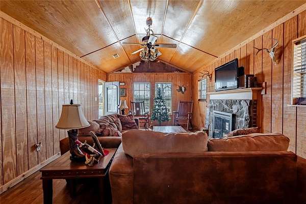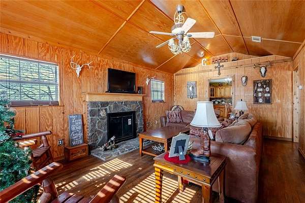The property features a two-car garage or carport, along with an outdoor fireplace that doubles as a barbecue pit, ideal for entertaining family and friends. A barn with stables is already in place while it does need some TLC, its ready for your vision. There is a large concrete pad already poured, making it an excellent opportunity to build out a custom barn or horse setup.