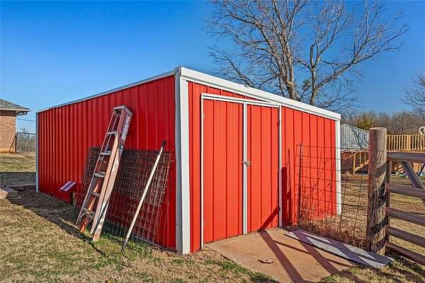 Welcome to your dream farm, where the gate keeps the peace in and the possibilities wide open. This 10-acre homestead comes with a shop/barn with electric, a chicken coop ready for farm-fresh eggs, and plenty of space to roam. Cool off in the above-ground pool with deck, then gather under the pergola or covered patio-perfect for entertaining or adding a future hot tub. Inside, you'll find a spacious kitchen with granite countertops and tons of storage, Living Room with wood- burning fireplace, an updated second bathroom, and a large primary bedroom with a jacuzzi tub for soaking after a long day of country living. 4th Bedroom could be used as an office. portable generator, storm shelter and so much more. HVAC 2024, Roof 2023, Hot Water heater- 2025, Well Pump-2024. water softner-2025. If you've been dreaming of fresh air, open land, and a place that feels like home-this one's worth a look.