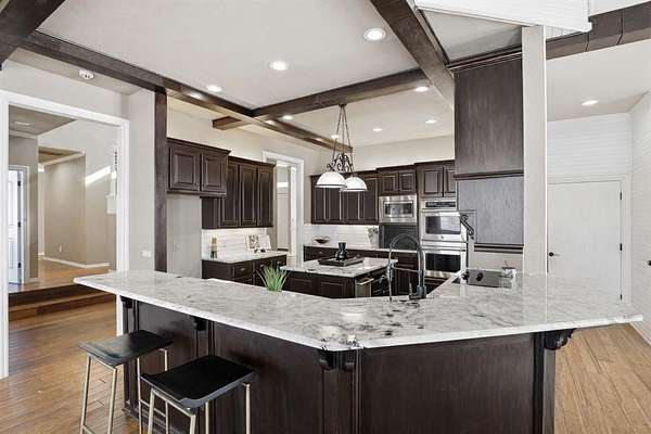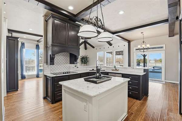 NEW ($56,900) Class 4 impact-resistant roof and gutters installed 10/25! PLUS Lender-paid 1% rate buydown for 1-year - enjoy a lower payment at no cost to you, ask for details! Self sufficient homestead easily accessible to I-35, in NE Edmond, zoned Agricultural with minimal restrictions! Featuring many updates throughout, this beautiful estate located on 5 fully fenced acres in Edmond schools offers an electric gate entrance, approx 40k gallon inground saltwater pool, massive covered patio, a 30x40 shop, inground storm shelter, multiple fruit trees. Inside you will find 4 bedrooms, a study (or could be 5th bed), 4 full baths, 2 living areas, 2 dining areas and a loft! This carpet free home features rich bamboo wood flooring throughout and designer tile in the bathrooms including heated flooring in the master bath! Impressive cathedral ceiling with stately wood beams is the focal point of the living room along w/ a dry stack stone fireplace and large windows that bring ample natural light into the home & stunning views of the property. The saltwater pool has full wrought iron fencing & concrete patio area surround for sunbathing. With an impressive 40k gallons, the pool was refinished in 2023 with waterfall features and multiple seating / sundeck areas. A striking backyard is an entertainer's paradise! 40x30 covered pergola installed in 2023 with two 96" ceiling fans & wall for hanging a TV. Another lg gathering space located next to the covered patio w/ flagstone pavers. Property is cross fenced providing a dog run space along w/ an area for livestock & an electric gate with new motor at the entrance. The front 2 of the 5 acres are separately fenced providing perfect housing for alpacas, sheep, goats - endless possibilities! The 30x40 shop has electricity and 2- 8' doors, an attached 40'x10' chicken run & 12x12 chicken coop. Chickens convey w/ the property! See attachment for additional list of upgrades & amenities! VIRTUAL TOUR!