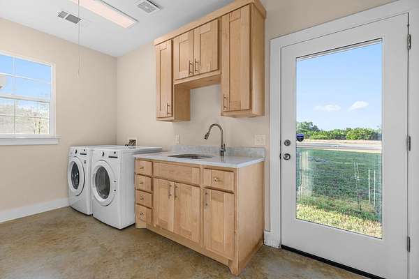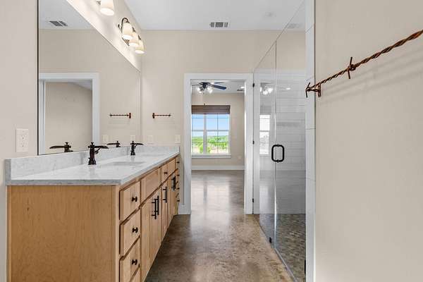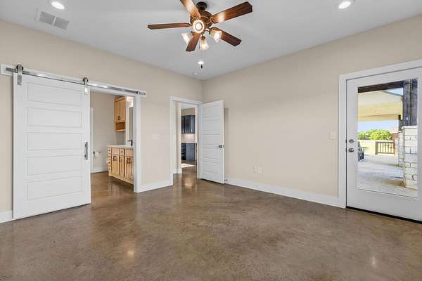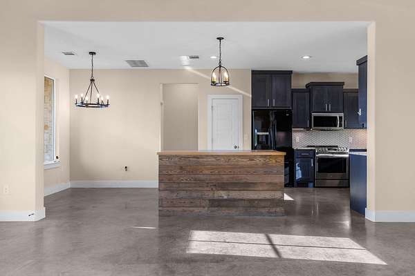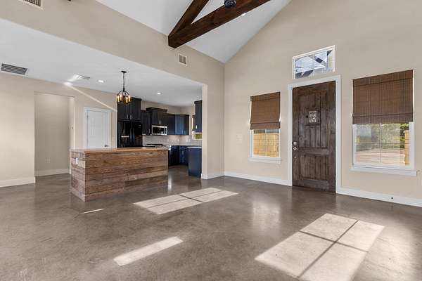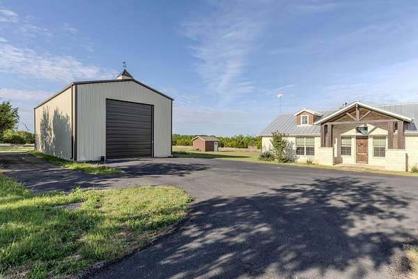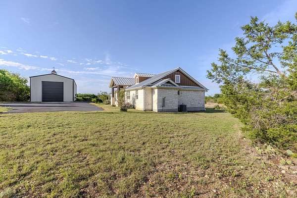 Built in 2021 and set on just over 10 scenic acres in Bertram, this 3-bedroom, 2-bath ranch-style home offers modern construction, timeless finishes, and sweeping Hill Country views. Inside, the open-concept living area is anchored by a stunning floor-to-ceiling stone fireplace, creating a warm focal point and inviting gathering space. Stained concrete flooring adds durability and style, perfectly suited for country living. Large windows bring in natural light and frame the surrounding landscape. The kitchen and living spaces flow seamlessly to a covered back porch-ideal for enjoying sunsets, morning coffee, and the peaceful views that stretch across the property. The home features a durable metal roof and a thoughtfully designed layout that blends comfort with low-maintenance living. A separate oversized garage-resembling an RV garage-provides exceptional space for recreational vehicles, boats, equipment, or workshop needs. With room to roam, privacy to enjoy, and modern finishes throughout, this property offers the best of Hill Country living just outside the city.