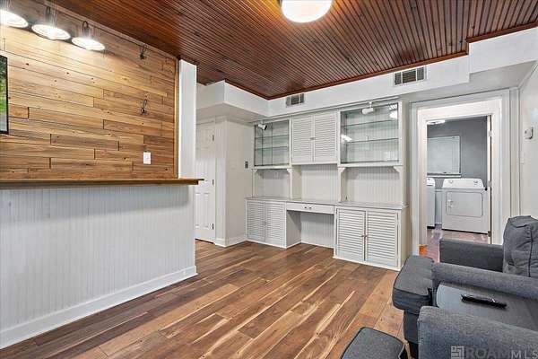 - Beamed Ceilings, Built-In Features, Ceiling 9'+, Ceiling Varied Heights, Crown Molding