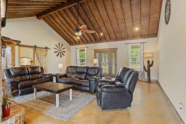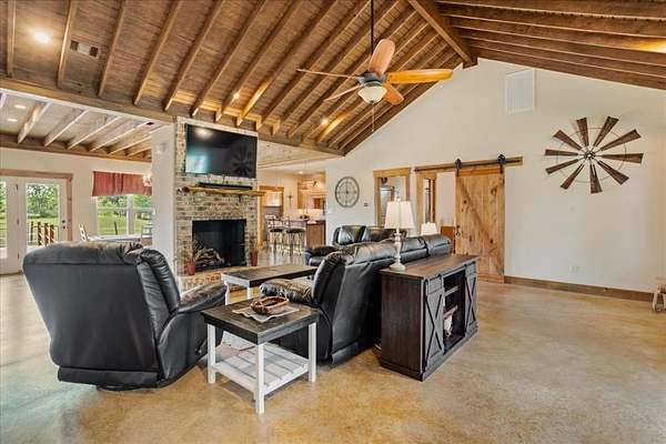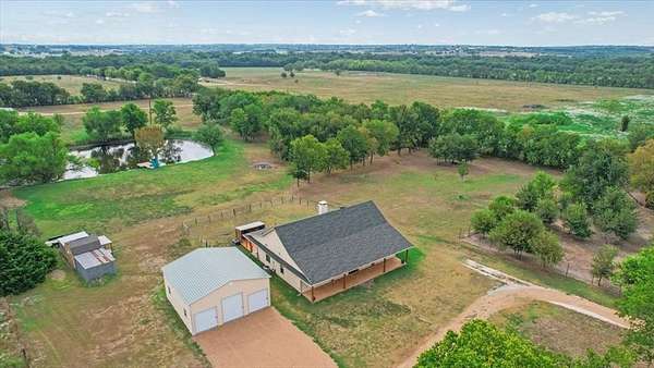 Presenting 7944 CR 669, Blue Ridge, TX USA. the perfect combination of a modern Texas farmhouse, on 5.24 acres, complete with a 30x30 workshop and a big tank. Location is important and you are positioned in Blue Ridge ISD, between Farmersville and Blue Ridge, close to State Highway 78, and an easy commute into the Sherman technology corridor, McKinney or DFW. Step inside to the expansive vaulted ceilings, showcasing wood rafters and a central brick fireplace. Yes, it's hot outside today, but you will appreciate the easy to use gas fireplace come winter. Turn the corner and relax in the massive primary bedroom, complete with an ensuite bathroom, offering a whirlpool tub, dual copper sinks and a walk-in custom shower. The kitchen showcases a copper farm sink, generous cabinets, wood counters and a gas stove. The second bedroom is a suite with access to the adjacent bathroom. Since the home is one and a half stories, you can escape upstairs to the secluded third bedroom. You will appreciate the spray foam insulated walls, a tankless hot water system and an attic with wood floors for extra storage. The recently built 30x30 workshop, on a concrete pad, with roll-up doors, is ready for your truck, tractor and side-by-side. Step outside onto the oversized front and back porches, enjoy the cooking shed and fenced backyard. The picture- perfect land is perimeter fenced on three sides, dotted with fruit trees and boasts a nearly half acre stocked pond. So, bring your fishing pole. Your cows will love it here. You don't have a cow, well, maybe you need one. NO Deed Restrictions. NO Floodplain. The desirable Wilson Clay and Crocket Soils are rated for grazing through limited farming. Information is deemed reliable but Buyer should perform due diligence.
