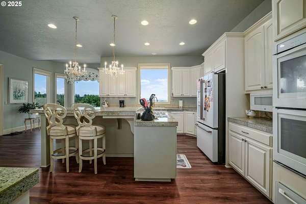 Est $6,947/moBeautiful single level home with stunning views of the Mount Jefferson in gated community. Walk in the front door and be greeted with huge windows taking in the breathtaking views. Custom drapes throughout. Vaulted ceilings with close attention to detail. Gas fireplace in primary bedroom. Huge kitchen with granite counters, 2 dishwashers, 2 disposals, wine fridge, double ovens, gas cook top, and walk in pantry. 4 bedrooms plus an office! New roof in 2022. Large unfinished attic with lots of possibilities.