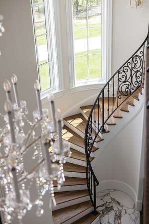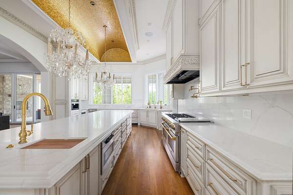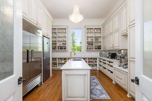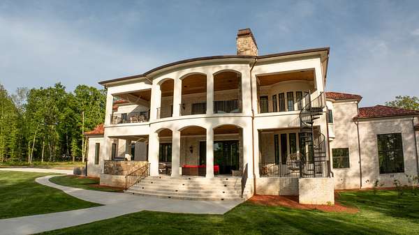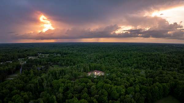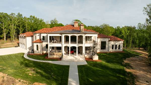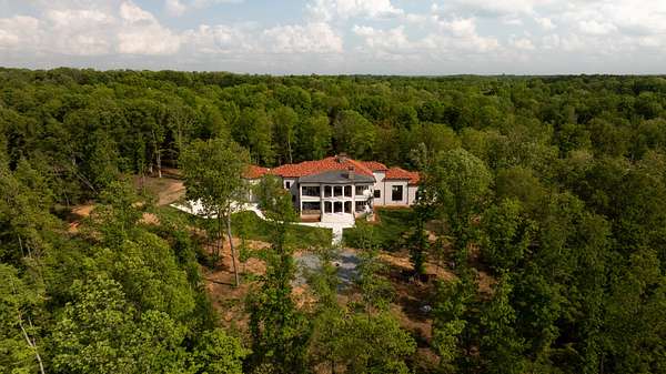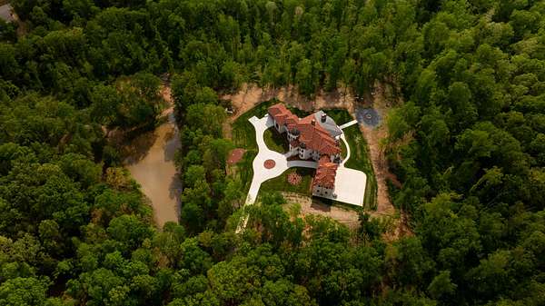 Embodying the timeless appeal of Mediterranean architecture and the refined lifestyle of Tennessee's coveted Williamson County countryside, this extraordinary estate offers a rare fusion of luxury, engineering, and natural beauty across 35 acres of gently rolling wooded terrain. This is a private world unto itself--where a year-round creek, west-facing sunsets, and a one-acre fishing pond set the tone for serene, elevated living. Stunning full gourmet kitchen with dual sinks and an oversized scullery/prep kitchen. Private balcony off the master suite that boasts a spa quality bathroom. Main level features a spacious bedroom suite with full bath, two half guest baths, a crossfit gym, BBQ terrace, and formal living spaces with expansive views. Along with the primary suite, the second level has three bedrooms each with en-suite baths and lounge area with access to the balcony. The basement features a wine cellar, bar and entertainment area, theater, and guest bedroom. The home is a triumph of thoughtful design and advanced infrastructure, featuring 5 garages, 4 gas fireplaces, and an elevator that connects all levels. Additional 5-bedroom perk site is approved allowing for future guest home or barn with living quarters. This estate is engineered to stand apart, with a rainwater harvesting system collecting from the 10,000 sq ft roof into a 10,000-gallon underground cistern prioritized to fill and sustain the pond, with overflow diverted to home use. A sophisticated water management system ensures reliability with a 7,500-gallon purified reserve and a backup well connection for drought resilience. Power is no less impressive: 1440V underground service from the street delivers 800 amps to a main distribution panel and six sub-panels (4x200A, 2x100A) ensuring robust capacity. The grounds offer a tapestry of mature hardwoods and tranquil creekside moments. Enjoy year-round natural beauty with total privacy, all while being close to Leipers Fork, Franklin and Nashville