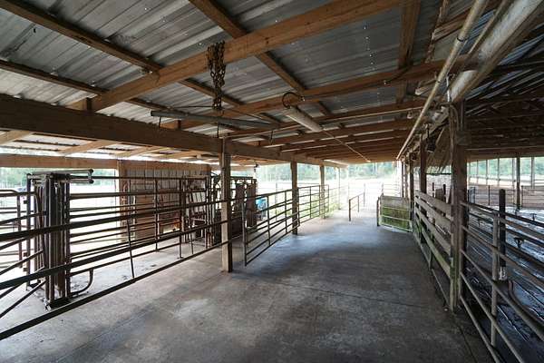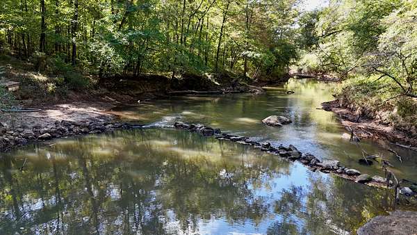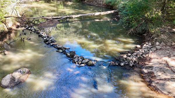 White Oak Creek meanders along the western boundary of the property, adding natural beauty and a touch of rare history with an ancient Indian fish trap (weirs). Native Americans built these traps by piling rocks and boulders across the creek in a distinctive V-shape, allowing them to catch fish as they swam into the narrowing channel. The land is fenced and cross-fenced, featuring lush pastures, catch pens, livestock watering troughs, and an expansive internal trail system. Three barns support farm operations, including a 40x320' facility with an office and full bath, plus a 40x60' pole barn.