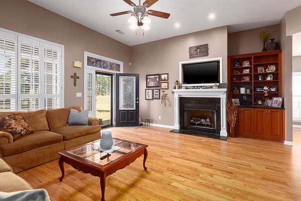 At the heart of the farm is a custom-built 3,758+/- SF home featuring 4 bedrooms and 3 bathrooms, including a main-floor primary suite, hardwood floors, and a spacious sunroom overlooking the property. The partially finished walk-out basement is ideal for an in-law suite and includes a cast-in-place concrete storm shelter, which could also serve as a future walk-in safe.
