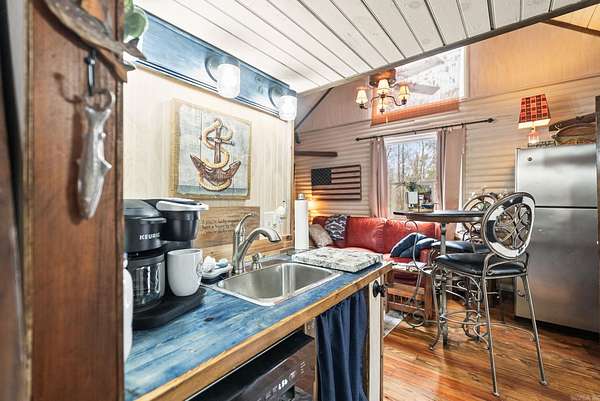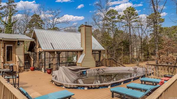 Experience the perfect blend of upscale comfort and laid-back lake living in the stunning custom home situated on 2.58 beautiful acres just across from the neighborhood boat launch for Greers Ferry Lake. Designed for both everyday living and unforgettable entertaining, this home features a spacious loft, a warm inviting fireplace, custom kitchen cabinetry, and elegant granite countertops throughout. The detached game room with an incredible custom bar creates the ultimate gathering space for family and friends. Outdoors, the amenities truly set this property apart. Host unforgettable evenings in the party pavilion complete with its own fireplace, or take advantage of the impressive 30X40 shop with pull-through-garage doors - perfect for boats, lake toys, or hobby space. For additional peace of mind, the property also includes an underground tornado shelter. Adding exceptional value is the fully furnished quest cabin currently operating as a profitable short-term rental. This charming retreat offers 1 bedroom, 1 bath, kitchen, laundry and loft - ideal for guests or continued income potential. Whatever you are searching for, this property delivers it all! Luxury! Lifestyle! Lake!