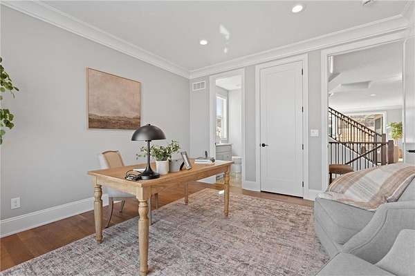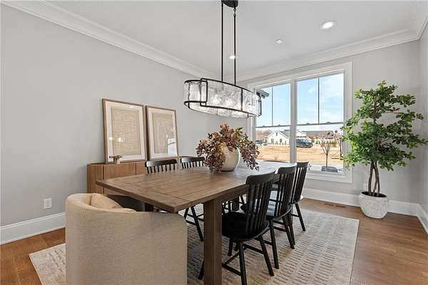 The main floor features hardwood floors and includes a great room, formal dining room, flex room, and an amazing screened-in porch perfect for enjoying the outdoors in comfort.