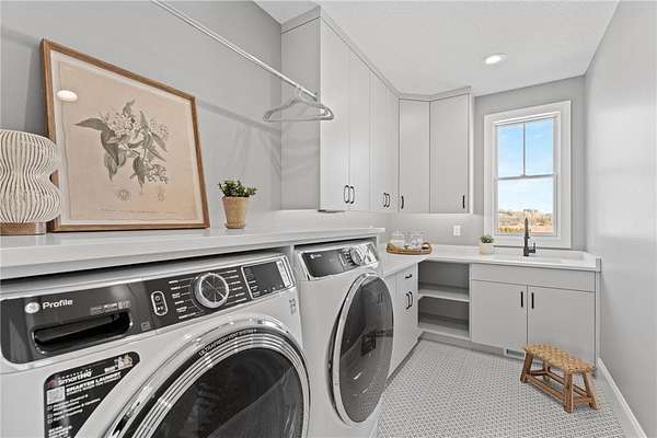 The second floor boasts four spacious bedrooms and three bathrooms, as well as the convenience of laundry facilities. On the lower level, you'll find a large family room, an exercise room, and a fifth bedroom, completing the luxurious living experience. 3 car prestress garage and a 3 car heated garage!