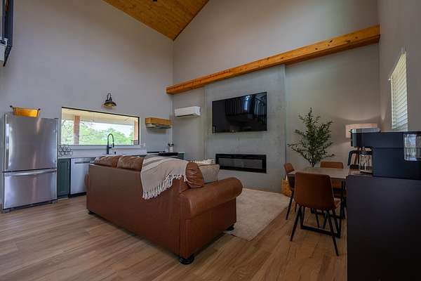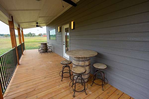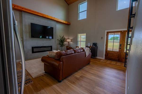 Set in the heart of the Texas Hill Country along the highly sought-after Hwy 290 Wine Trail, this rare 5-acre property offers a unique blend of immediate income potential, future flexibility, and lifestyle appeal. Ideally positioned just behind Fredericksburg Trade Days and minutes from some of the area's most popular wineries, the location places you directly in one of Central Texas' most active tourism corridors, making it an exceptional opportunity for short-term rental use or a private retreat. The thoughtfully designed 900 sq ft residence is fully furnished and turnkey, allowing for immediate use or rental from day one. Whether you're creating a weekend getaway or a boutique rental experience, the setup is already in place to capture consistent demand. An existing RV pad with electric adds an additional income stream or flexible guest accommodations with minimal effort. What truly sets this property apart is its ability to grow with your vision. With ample space for a second dwelling, the opportunity exists to expand into a multi-unit short-term rental, private compound, or curated wine country escape. The current agricultural exemption helps keep holding costs low, while allowances for wine or orchard-related commercial use open the door to future agritourism or boutique vineyard concepts. With a rare combination of location, usability, and long-term upside, this property offers a path to create something truly special in one of Texas' most desirable destinations.