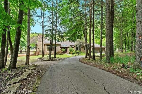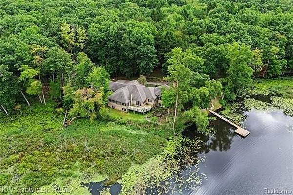 Remarkable 19+ acre private retreat in Clarkston! At the end of a secluded drive, you'll find a custom 3,700 sq ft brick ranch with a 3-car garage, offering privacy, natural beauty, and serene waterfront living. Designed for entertaining, the great room impresses with soaring ceilings, architectural details, walls of windows, and a floor-to-ceiling stone fireplace that opens to the lakeside deck. The spacious kitchen features a large island with breakfast bar, a bright nook with deck access, and flows seamlessly into the dining room with wet bar. The primary suite boasts a generous en suite bath and walk-in closet, while two additional bedrooms offer vaulted ceilings and custom finishes. The unfinished walkout basement provides the opportunity to expand, with potential for over 7,300 sq ft of total living space. The property's private lake--with frontage shared by only seven homes--offers year-round enjoyment: swimming, kayaking, fishing, paddle boarding, ice skating, and more. Wildlife abounds, and with 19 wooded acres, you'll also enjoy fishing and hunting just outside your door. With its peaceful setting, this retreat is only 2 miles from downtown Clarkston, and close to restaurants, shopping, expressways, and within the highly regarded Clarkston School District. A rare opportunity to own a private estate with endless recreational possibilities and room to create your dream home! Property is able to be split into 4 separate properties