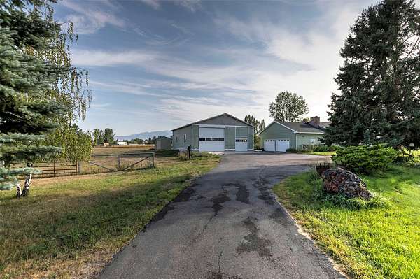 Spacious Home with Large Heated Shop & Mountain Views on 2.46 Acres. This spacious home offers 2,904 sq. ft. of living space with 3 bedrooms and 2 bathrooms on the main level, along with a convenient laundry area. The finished lower level includes a family room, two versatile bonus rooms, a bathroom, and abundant storage. An attached oversized 2-car insulated and heated garage provides room for vehicles, workshop space, or extra storage. In addition, a remarkable 2,060 sq. ft. heated and insulated shop features tall ceilings, four doors, including a 12' door ideal for RV storage, a drive-through design, and concrete floors, making it perfect for projects, equipment, or recreational vehicles. Set on 2.46 acres, the property is fully fenced with wood and smooth wire, offering ideal space for a hobby farm or 4-H animals. Enjoy outdoor living on the deck with mountain views, or in the inviting sunroom addition off the kitchen, which also includes newer appliances. The property is enhanced with underground sprinklers, mature landscaping, two additional storage sheds (12' x 12' and 12' x 16'), and a striking rock fireplace as the centerpiece of the living space. The loop driveway and additional parking areas provide ample room for RVs, boats, and toys. Located in the Hellgate Elementary School District, this home combines a semi-rural feel with convenience, just minutes from town, the Kelly Island Fishing Access, and the abundant recreation opportunities Missoula has to offer.