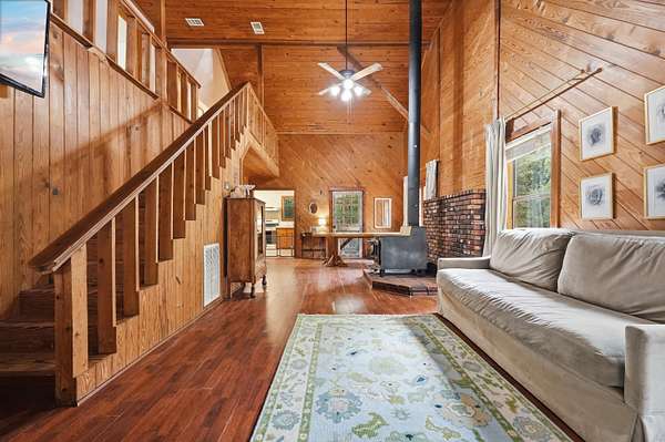 Escape to the tranquility of country living in this charming custom-built cabin set on a sprawling 10-acre parcel. This two-story rustic home is surrounded by natural beauty and offers a unique setting of privacy and peaceful surroundings. Envision gardening, enjoying outdoor recreation, or relaxing among nature. A large workshop and carport are included. Step inside to discover a warm and inviting interior, featuring abundant natural light, impressive woodwork, an open living space and tall cathedral ceilings. The primary bedroom is located on the first floor, with additional bedrooms on the second floor in a loft-style setting. Whether you are looking for a full-time residence or a weekend getaway, this unique country property offers a rare opportunity to own your own slice of paradise.