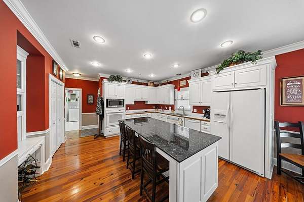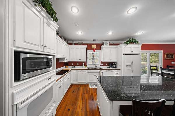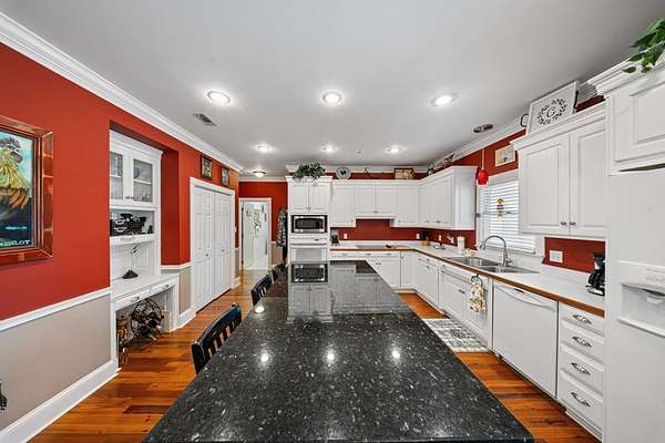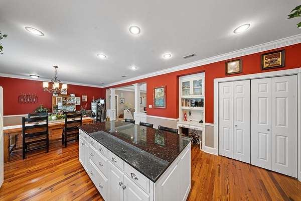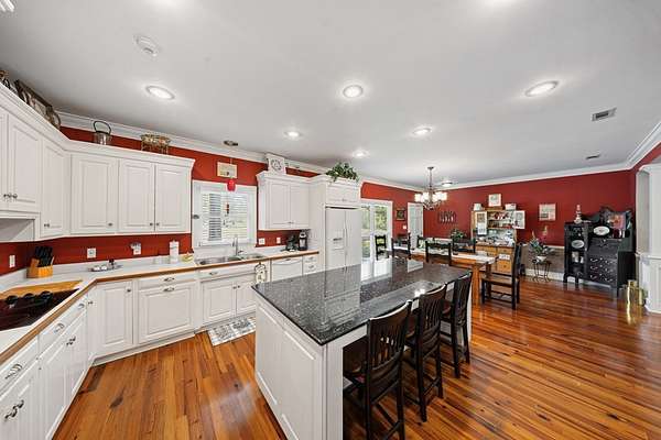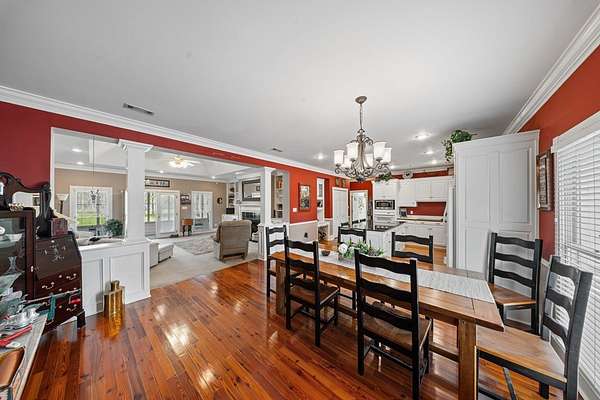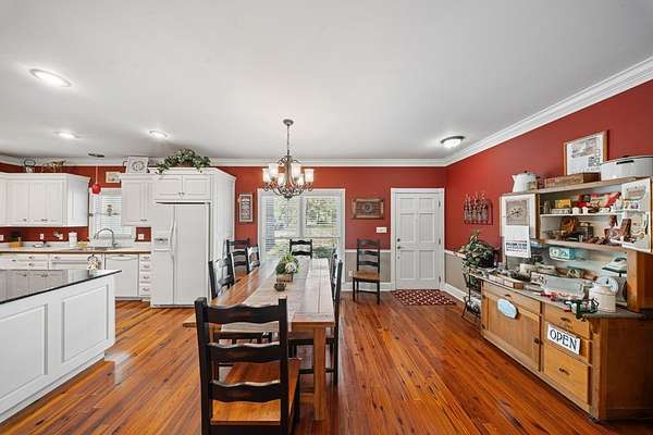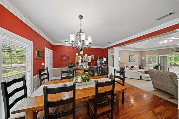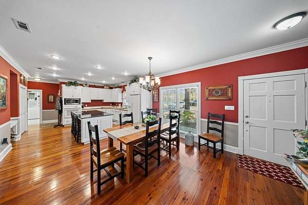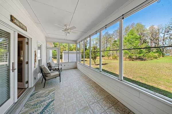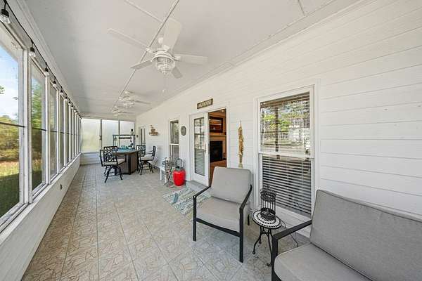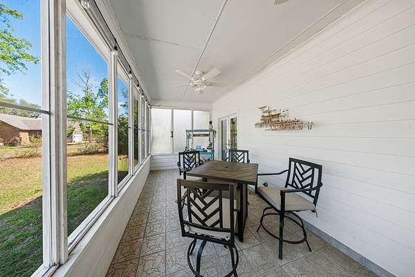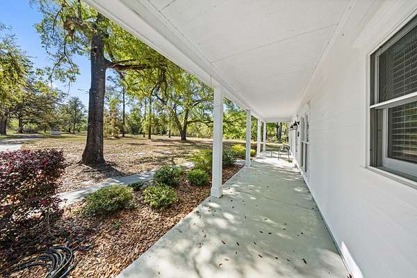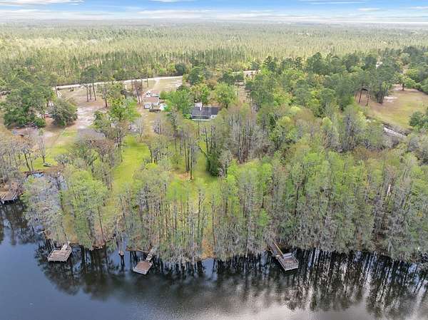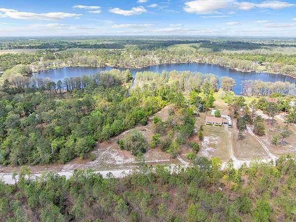 This charming home on Enoch Lake, just minutes from the Florida line, offers the perfect blend of peaceful retreat and everyday living. Situated on just over five acres, the property provides plenty of space to explore, along with beautiful water views and full lake access. Inviting front and rear porches create the perfect setting to relax and enjoy the surroundings. Inside, the open-concept layout seamlessly connects the kitchen, dining, and living areas, making it ideal for both entertaining and daily life. The spacious kitchen features abundant cabinetry and a large island, perfect for gatherings. The family room opens to a screened back porch and showcases a cozy fireplace with built-in cabinetry on either side. A split floor plan ensures privacy, with generously sized guest bedrooms sharing a hall bath. The dining room and kitchen are highlighted by stunning heart pine floors, adding warmth and character. The oversized laundry room includes unique custom shelving for added convenience. The primary suite offers two closets and a beautifully updated bathroom with refreshed dressing areas and a modern shower. Step outside to the fully screened back porch with tile flooring, where you can unwind while overlooking the property. Just beyond, Enoch Lake awaits, complete with a private boat dock—perfect for fishing or simply enjoying the tranquil scenery. Whether you're looking for a weekend getaway or a full-time residence, this property offers comfort, space, and a true connection to nature.