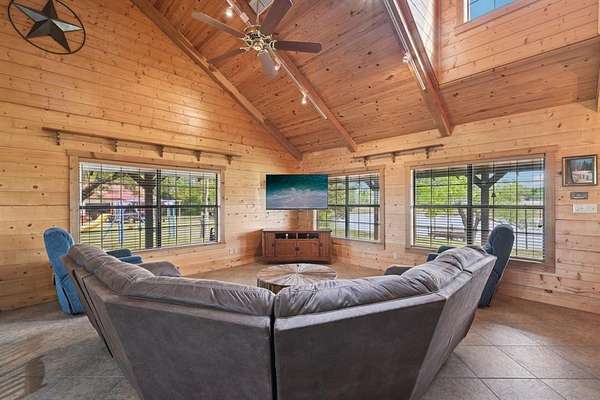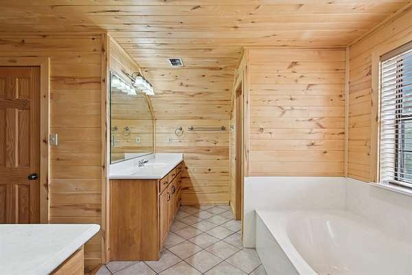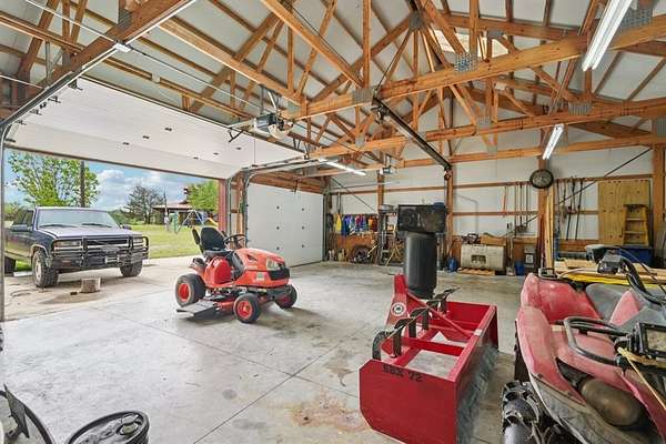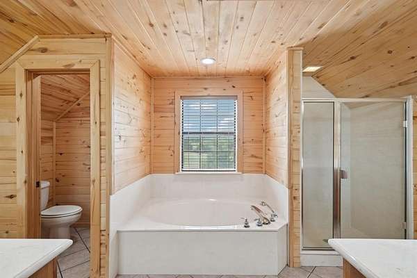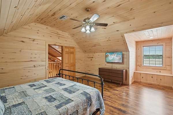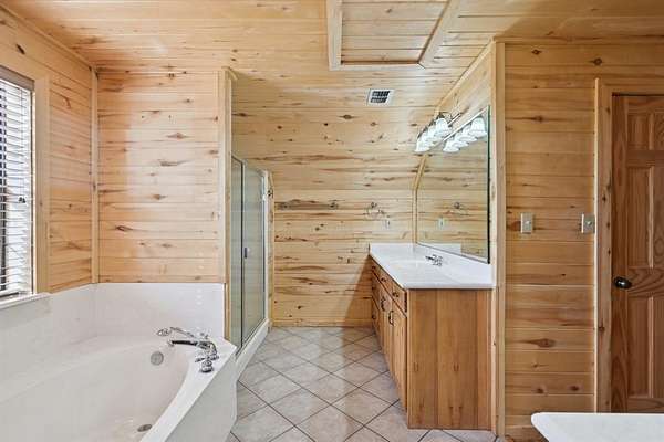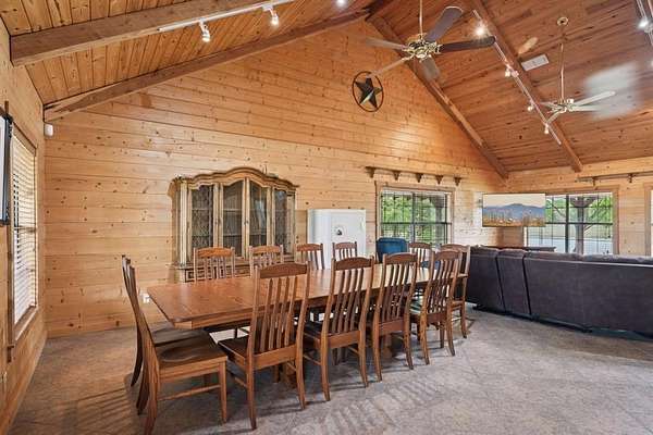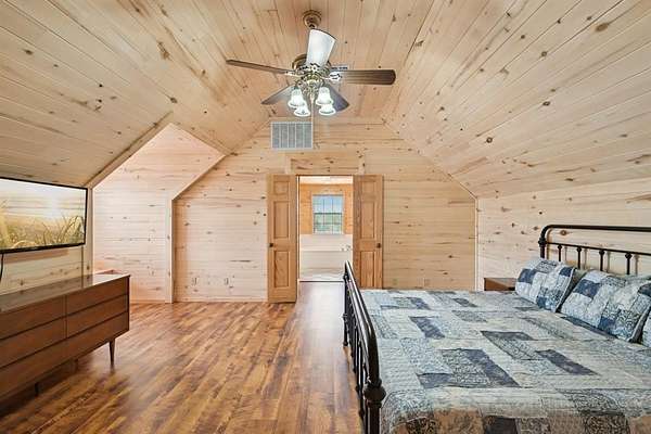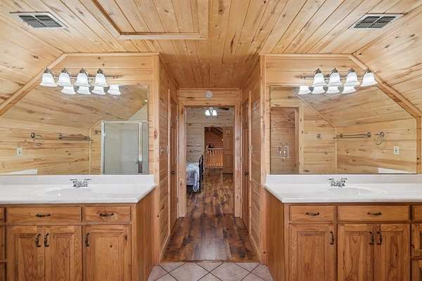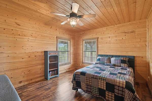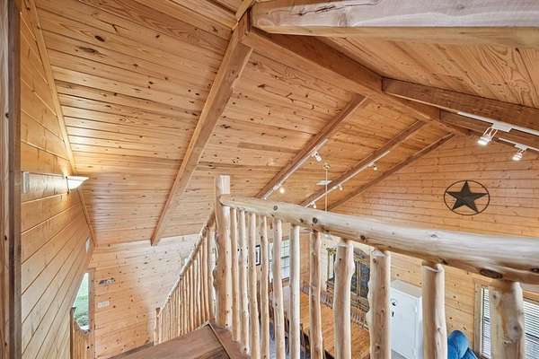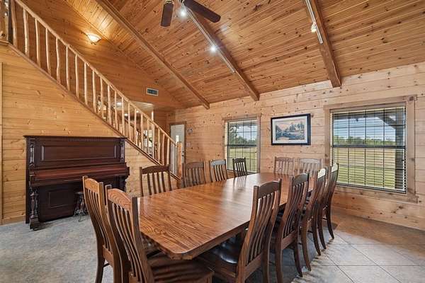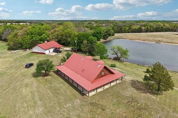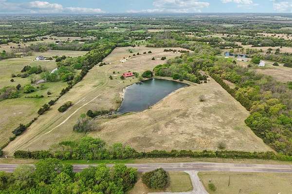 This is the one! Come get this beautiful log cabin with gated entrance, stocked pond, 1500 square foot garage, and 50.355 exceptional acres. Currently two parcels are combined making the total 50 acres. The cabin boasts an open family room and dining room featuring a vaulted ceiling with solid beams. The kitchen features solid surface counters, center island, and double ovens. The primary bedroom is perfect for king size furniture. The primary bath includes dual sinks, dual closets, separate shower, and garden soaking tub. The property features excellent road frontage on Hwy 78! (872 linear feet) The possibilities are endless with strong potential for future development or division. Falls in the Bonham Independent