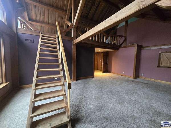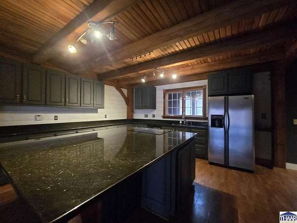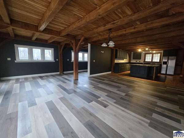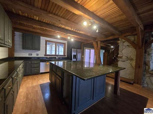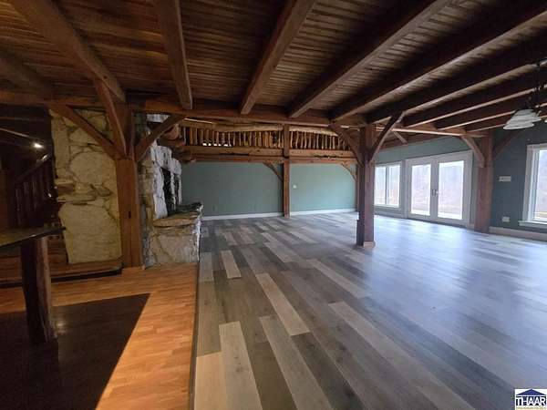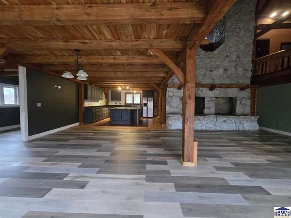 Est $3,139/moLong tree line driveway back to a world of seclusion & wildlife.40 acre plus surround this beautiful 4648 SF home. This unique home displays superior craftsmanship in both design & construction. Kitchen features handmade cherry cabinets W/ granite countertops. Spacious dining room overlooks this large deck & backyard. 30ft tall stone fireplace compliments large great room w/vaulted ceilings. Custom mortise and tenon wood peg beams. Full basement with another stone fireplace, Large 3 Car attach garage plus a 40 x 52 Wood barn all on 42.28 Acres.