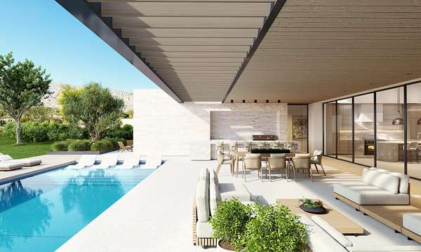 Within The Quarry at La Quinta, one of the Coachella Valley's most exclusive and closely held private club communities, this homesite on Tom Fazio Lane N offers something that rarely surfaces: a positioned lot with genuine design momentum already in place. Set along the 18th hole of the Tom Fazio designed course, the parcel frames a composed view of the southern Santa Rosa Mountains, with the fairway establishing both privacy and presence. What distinguishes this opportunity from a raw lot is what has already been done. Plans by architect Scott Hudgins of Hudgins Design Group, known for refined desert modern residential work, envision a home of approximately 5,500 square feet. The program includes four bedrooms, four and a half bathrooms, and a media or bonus room, organized to take full advantage of the site's orientation and views. HOA approved plans and City of La Quinta approved permits are in place, removing a layer of complexity that typically consumes months of a custom build process. The Quarry is not a community that explains itself. Membership is limited, the golf is exceptional, and the residential fabric reflects the discipline of buyers who understand what scarcity actually means in the desert. A lot of this caliber, adjacent to a signature hole, with approved architecture ready for execution, does enter the market often. For the buyer who has already envisioned the life that comes with a private club homesite in The Quarry, this is where that vision becomes a viable project rather than a prolonged search. Contact the listing agent for plan review, permit documentation, and private site access.