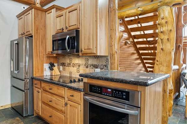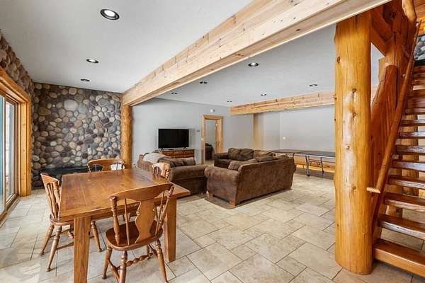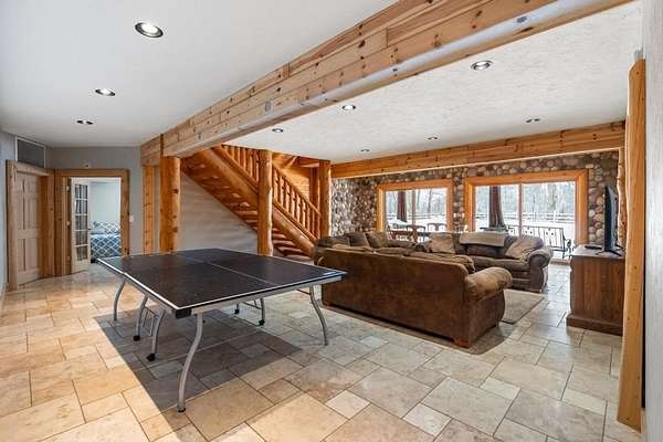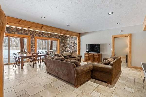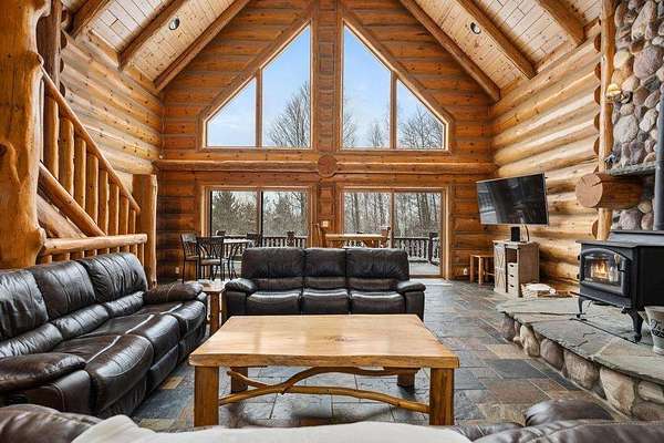 If youve been searching for a home that feels private yet close to town, has Northern Michigan charm yet spacious, your search ends here. This stunning custom log home sits on five peaceful acres of mature woods and offers the perfect blend of rustic character and modern comfort, and is just minutes from downtown Petoskey and the lakeshore. Step inside to a dramatic living area with cathedral ceilings, a wall of windows, and an open layout that fills the home with natural light and beautiful woodland views. The kitchen is thoughtfully designed for both cooking and gathering, opening to the dining and living spaces that overlook the serene backyard. The main floor features a primary en-suite, full laundry room, and multiple access points to the wraparound porch where you can enjoy quiet mornings or evening sunsets. Upstairs, youll find additional en-suite bedrooms and a loft area that provides even more room for guests or flexible living. On the opposite side of the upper level, above the garage, a spacious finished bonus room includes its own full bath and laundry, offering a private and versatile space. The finished walkout lower level expands the living experience with tall ceilings, large windows, and access to the patio. This level includes a third en-suite, an additional bedroom, and a full bath, creating a bright and comfortable space for guests or family. Thoughtful storage areas are tucked away, allowing the living areas to feel every bit as refined and connected as the rest of the home. Outside, the fenced yard and surrounding trees create a private, park-like setting with plenty of space to enjoy Northern Michigans seasons. Theres room for an additional structure, such as a pole barn, for outdoor equipment or recreational vehicles. This exceptional home combines space, privacy, and timeless style in one of Petoskeys most desirable areas.
