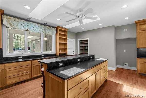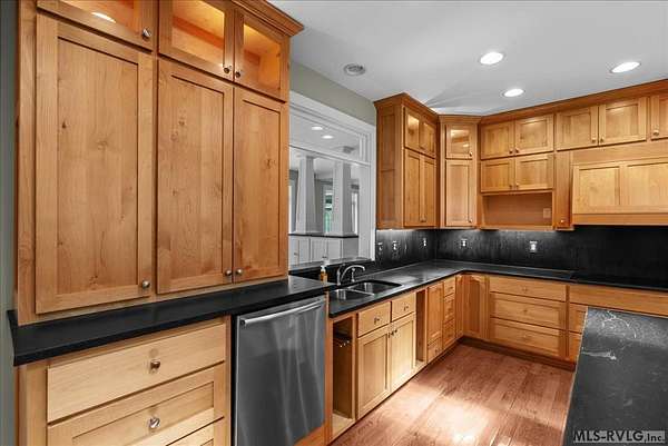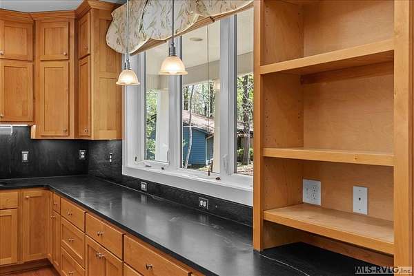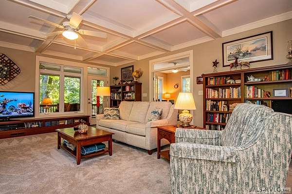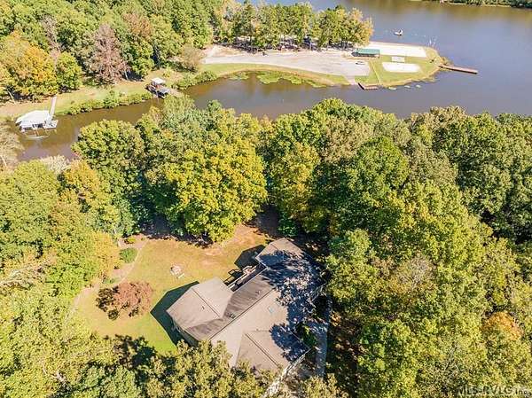Charming ranch lake house with walkout basement features luxurious craftsman style finishes throughout! Situated on two waterfront lots on Poplar Creek, this amazing 5,900 square foot custom home with attached triple garage boasts a main floor of elegant lakeside living, an expansive living room and dining room provides excellent views to the lake and opens to lakeside screened porch and open deck for entertaining; spacious culinary kitchen equipped with granite, custom maple easy close cabinets designed and built locally by Maddux Short, electric double ovens and flat cooktop, elevated dishwasher and pass through opening to dining room, additional butler's sink, tiered island and walk-in pantry (complete with space for second refrigerator and freezer), two primary bedrooms and full baths, an office and undesignated room (used currently as a sewing/quilting room but could easily convert to additional area for more sleeping)! Lower level encompasses a bedroom with full bath, an undesignated room (perfect for 2nd study), a large workshop with sink and additional walk-out to patio - workshop could be easily converted to a second kitchen. A mechanical room and storage areas finish out the basement . Built by RCS CONSTRUCTION INC. and finished in 2013, this property consists of detailed quality attributes, from 9 foot ceilings on the main floor and an expansive coffered ceiling in the living room, to sweeping windows on the lakeside! This property allows owners to enjoy the lake inside and outside! Gradual sloped lot and two separate single boathouses complete this property. Adjacent third building lot is included in the purchase. This ensures privacy and comfort when entertaining. Occupied but easy to show. NOTE: kitchen refrigerator does not convey. Pantry fridge does.