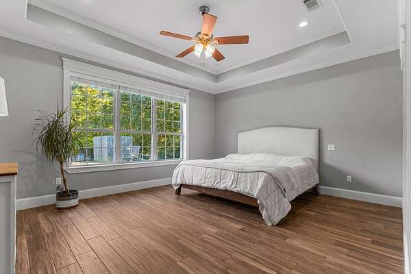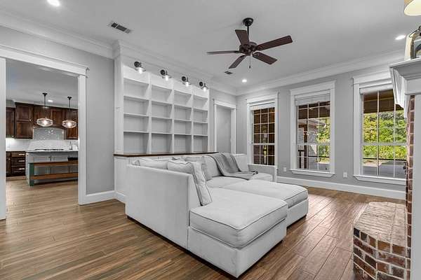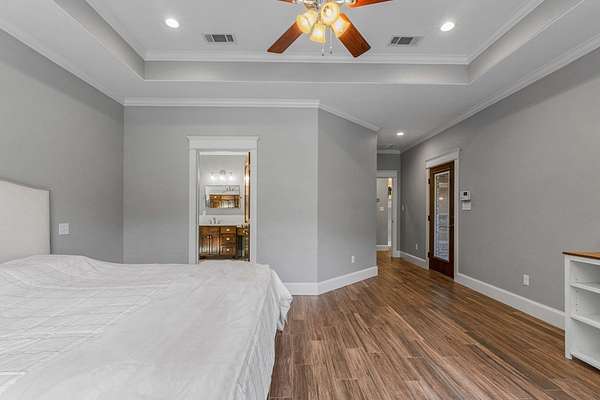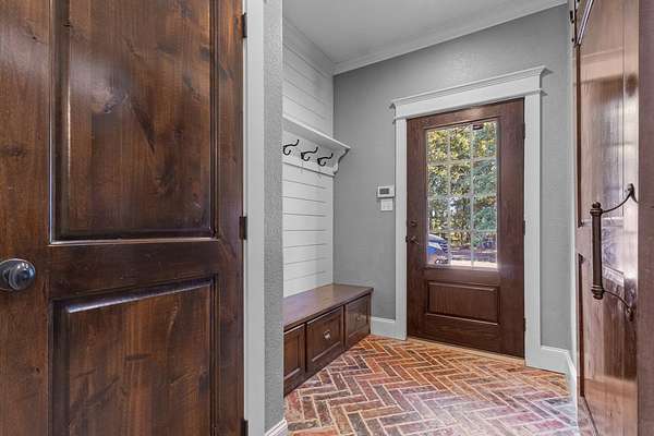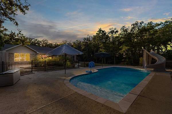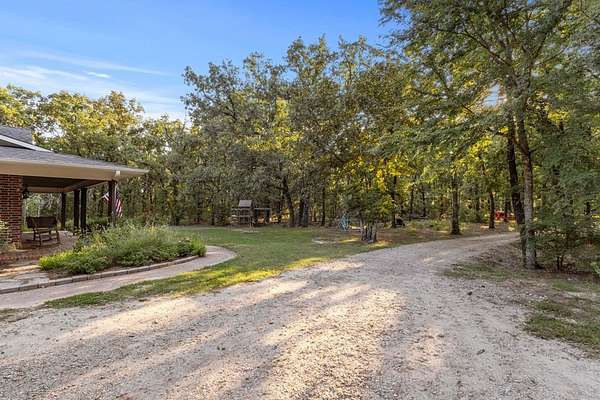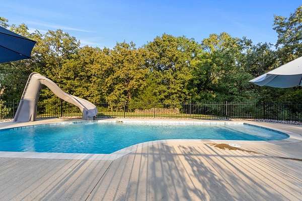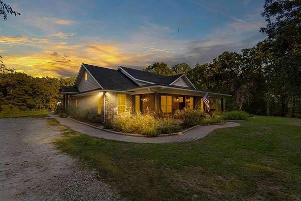 Welcome to your dream property--where exceptional design meets functionality, nestled on an expansive 22.48-acre estate. This custom 3,148 square foot, 4-bedroom, 2.5-bath home is packed with high-end features. The interior boasts soaring ten-foot ceilings, thick crown moldings, and lofty windows. You'll find ceramic wood-look flooring, richly stained knotty alder doors, and thoughtful modern additions like a tankless water heater, spray-foamed attic, automatic walk-in closet lighting, and programmable exterior outlets. The kitchen serves as the heart of the home with its granite countertops, gas range, double convection ovens, a large walk-in pantry, and farmhouse sink. Ample storage and sophisticated touches like an instant hot water dispenser and a prep-sink-equipped island enhance your culinary experience. The primary suite offers more than a retreat--it's your personal haven. A tray ceiling frames sweeping views, while the ensuite bathroom features a deep soaking tub, a waterfall-head walk-in shower, and pivoting mirrors for added elegance. Gather with family in the library-like family room featuring a built-in bookcase and gas fireplace. Additional bedrooms are perfectly situated to accommodate your needs, making this a home of balance and charm. Step outdoors to unparalleled recreational spaces. Relax in the cedar-framed screened porch or lounge by the fully fenced saltwater pool, complete with a waterslide and spacious decking perfect for entertaining. The adjacent English rose garden and butterfly-filled perennial plants create a natural haven of beauty and serenity. Explore the ag-exempt oak forest complete with a creek, abundant wildlife, and lush fruit trees--ideal for camping, nature-watching, or quiet reflection. A pond and fields dotted with 200-year-old oak trees enhance the pastoral feel, providing opportunities for grazing and spring wildflowers.