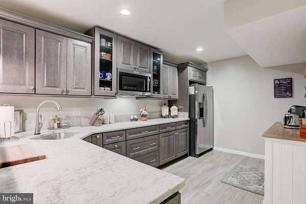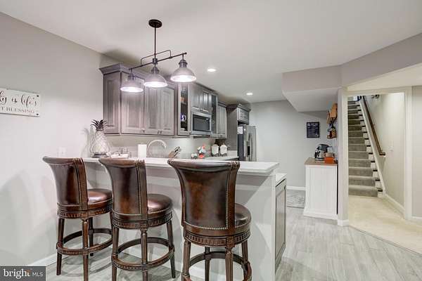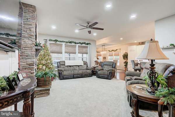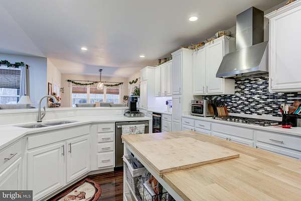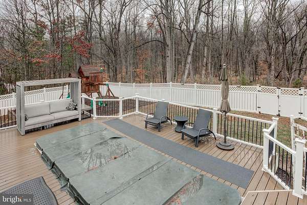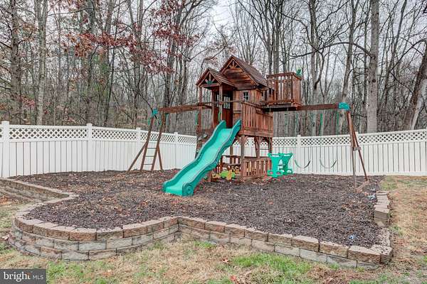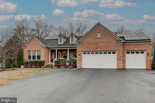 Discover comfort, style, and convenience in this beautifully maintained brick rambler tucked away in a quiet, hidden neighborhood of custom homes. Offering full main-level living plus a fully finished basement, this home features an open, light-filled floor plan with hardwood flooring and a spacious family room off the kitchen complete with a classic brick fireplace. The modern, updated kitchen boasts additional cabinetry, stainless steel appliances, a 5-burner cooktop, quartz countertops, and a stylish tiled backsplash, along with a sunroom/breakfast nook that invites natural light. A separate dining room off the foyer showcases elegant wainscoting and crown molding. The main level includes a generous primary suite with two walk-in closets and a luxurious bath featuring a jetted tub, large walk-in shower, and plantation shutters. There are also two additional bedrooms and an office for added space. The fully finished basement expands your living and entertaining space with two additional bedrooms, a third full bath, a recreation room, a wet bar/kitchenette, and a cozy den + lots of extra storage. Outdoor living is exceptional with a fenced backyard, double-level deck, patio, extensive hardscaping with fire pit, and an Integrity Swim Spa with split swim and jacuzzi jets. The home is situated on over two treed acres with a peaceful creek at the rear. Additional highlights include a large 3-car garage, expanded driveway for ample parking, storage shed, custom playground and owned solar panels providing impressive utility savings. Conveniently located near grocery shopping, outdoor recreation at Prince William National Forest Park, and offering easy access to I-95, I-66, and the VRE-this home truly has it all!