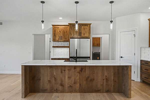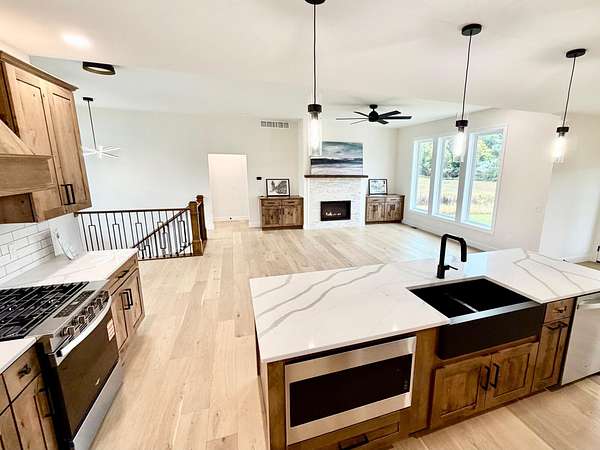 Want brand-new living without the dust, delays, or decision fatigue of building? This stunning 5-bed, 3-bath custom home delivers 3,450 finished sqft on a private 2.6-acre retreat, just up the road from the Kzoo Nature Center. The open-concept main level steals the show with engineered hardwood floors, warm rustic alder cabinetry, a chef-worthy kitchen with an oversized island, and west-facing views that light up every evening. Slide out to the covered porch for effortless entertaining or slow, quiet weekends. The primary suite feels like a boutique hotel escape--tray ceiling, spa-style bath, and a massive walk-in closet. The walkout lower level brings the wow factor with a huge family room, two spacious bedrooms (both with oversized walk-ins), a full bath, and sunlight everywhere. Outside, the yard is wide open for possibilities--pool, pole barn, or both. Built right with 2x6 framing, spray-foam insulation, Whirlpool appliances, high-efficiency HVAC, irrigation, and a large garage!