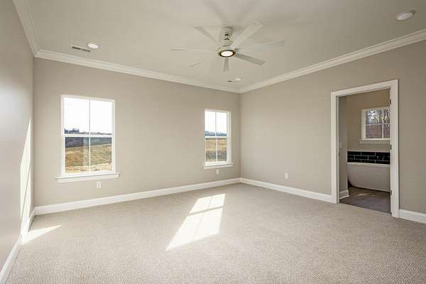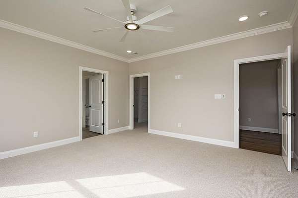 - Bathroom Mirror(s), Ceiling Fan(s), Crown Molding, Double Vanity, Eat-In Kitchen, Kitchen Island, Open Floorplan, Pantry, Primary Downstairs, Soaking Tub, Split Bedrooms, Walk-In Closet(s), Walk-In Shower