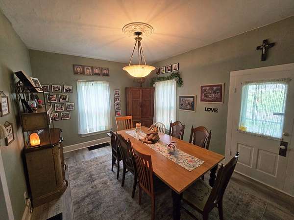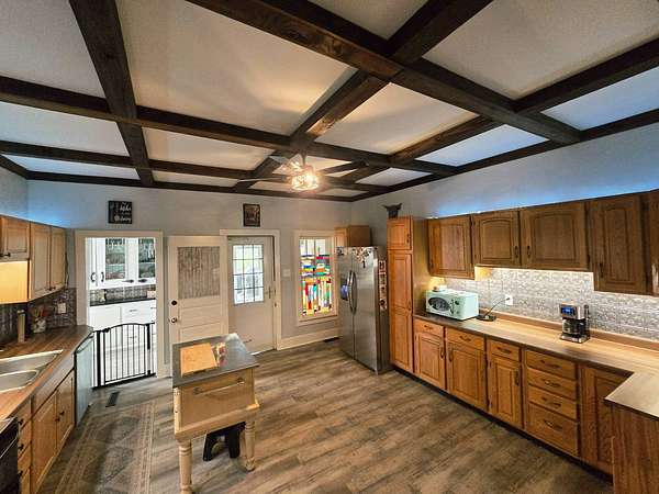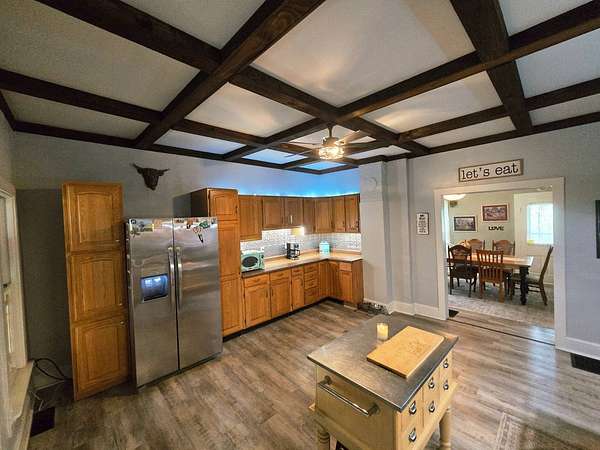 Experience the best of country living with this beautifully renovated 3-bedroom, 2-bath home set on 33± acres, complete with a scenic pond and abundant natural features. This versatile property offers the perfect blend of comfort, functionality, and rural charm-ideal for a homestead, hobby farm, or recreational retreat. Inside, the home features a spacious and thoughtfully designed layout, including a bright living room, formal dining area, and a renovated kitchen with new cabinetry, butcher block laminate countertops, center island, and a pantry with built-ins (appliances negotiable). The main level also includes a large laundry room with lounge area, mudroom, and welcoming foyer. The primary suite offers exceptional storage with two walk-in closets, one featuring custom built-ins. A bonus room provides additional flexibility for an office, guest space, or hobby room. Step outside to enjoy the large, brand-new deck or relax on the open front porch while taking in the peaceful surroundings. The full basement is equipped with a water softener, whole-house filtration system, dewatering system, and a substantial concrete "panic" room for added security and storage. The land is equally impressive, featuring a newly stocked pond that is still filling, Spring Creek running through the property, and a mix of open ground and natural habitat with mixed timber. Two large barns provide ample space for equipment, livestock, or storage, and three cisterns offer additional water access for agricultural use. A drilled 500-foot well (installed in 2008) services the home. With excellent hunting opportunities for deer, turkey, and small game, and plenty of room for horses, livestock, or a large garden, this property offers endless possibilities to create your ideal rural lifestyle. Contact your local Legacy Land Company listing agents!