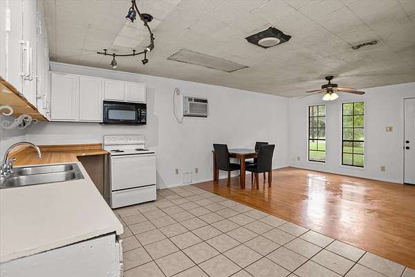 Est $688/mo*OWNER FINANCING AVAILIBLE* 10% down with 10% interest . Affordable 1 bedroom, 1 bathroom house on a slab with a new roof and paint on 2 acres!. Double carport with an enclosed space on slab with water, electricity and washer/dryer hookups. There is another metal building with an additional carport. There is a portion of the yard fenced for a dog. Perfect for person who needs a shop for working on cars, welding, etc.