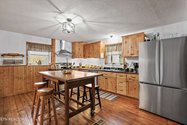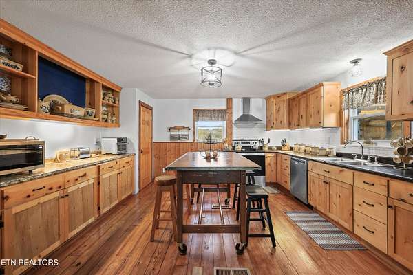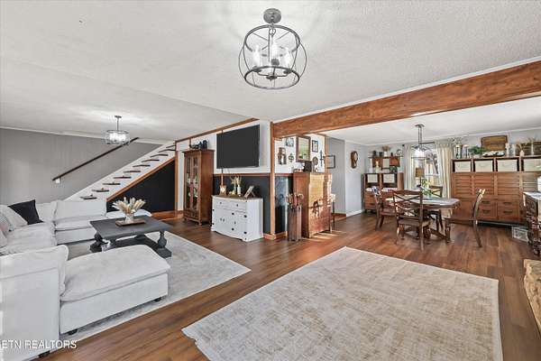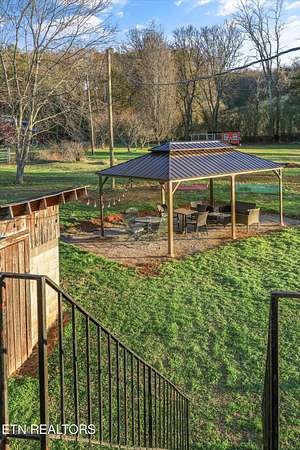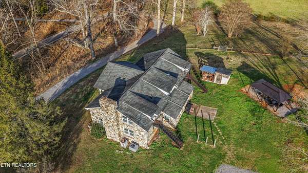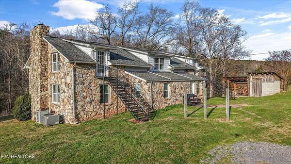 You'll fall in love with this timeless 2-level 3940 sq ft stone home, originally built in 1964 and thoughtfully updated to blend classic charm with modern comfort..Set on a peaceful and private 4.62-acre tract, this East Tennessee beauty offers the perfect balance of turnkey living and versatile land ideal for family life, multi-generational living, or rental income opportunities and the kind of peaceful, private country living that dreams are made of. As you approach your country retreat, you're greeted by a charming full-length front porch perfect for rocking chairs and sweet tea and welcomed into the home through gorgeous metal and glass doors--truly a statement piece! Step inside where hardwood floors carry you through spaces that flow naturally, inviting conversation and connection at every turn. The main level features an open family and living area anchored by a stunning stone fireplace with a stove insert, an inviting dining area, and an open kitchen with abundant cabinets and counter space. Two bedrooms and two newly renovated bathrooms complete the main level.Venture upstairs to discover a complete family suite with a wood burning fireplace accompanied by three additional flexible rooms that adapt to your lifestyle. Whether you need a home office, craft studio, guest quarters this layout delivers remarkable versatility. The thoughtful design includes two separate entry and exit points, creating exceptional possibilities for multigenerational living arrangements. The basement provides even more space for seasonal items, hobby supplies, or whatever your storage needs might be. This property extends far beyond its stone walls. 4.62 acres of highly usable land unfold before you, featuring lush pastures perfect for horses, hobby farming, or simply enjoying wide-open spaces. Two barns offer endless possibilities for equipment storage, workshop space, or housing your four-legged friends. A charming chicken coop awaits your flock, while the gazebo entertainment area sits ready for barbecues, birthday parties, and lazy Sunday afternoons. Plenty of parking ensures guests always feel welcome, and the covered options within the barn protect vehicles from the elements. Country living at its finest rarely comes packaged so completely. From the original architectural character that gives this stone beauty its soul to the thoughtful updates that make daily life comfortable, every detail has been considered. Whether you're dreaming of a homestead, mini-farm, or simply a peaceful country escape, this home offers space, character, and endless potential. Discover the best of East Tennessee country living - make this one-of-a-kind property yours today!
