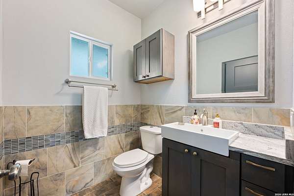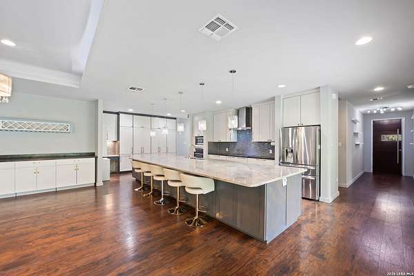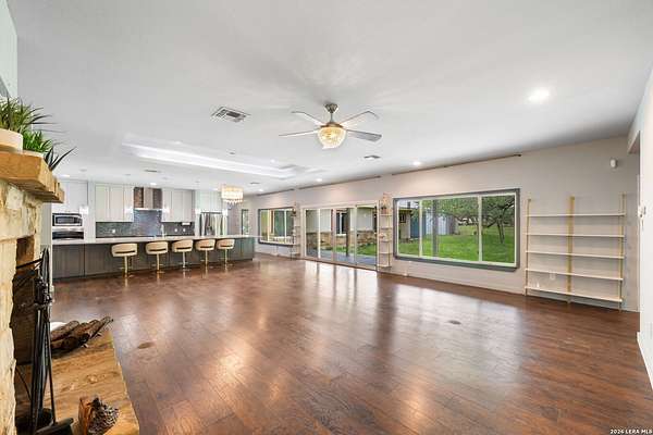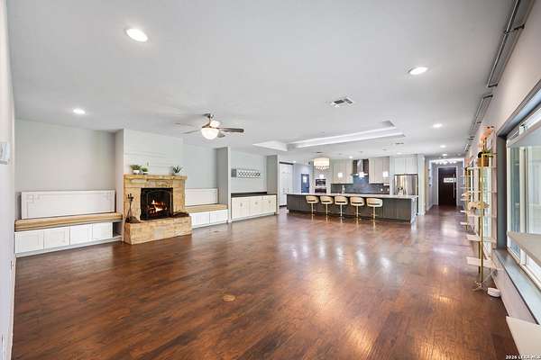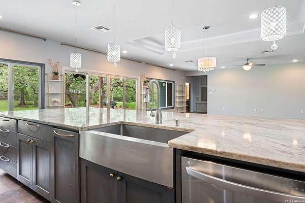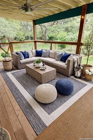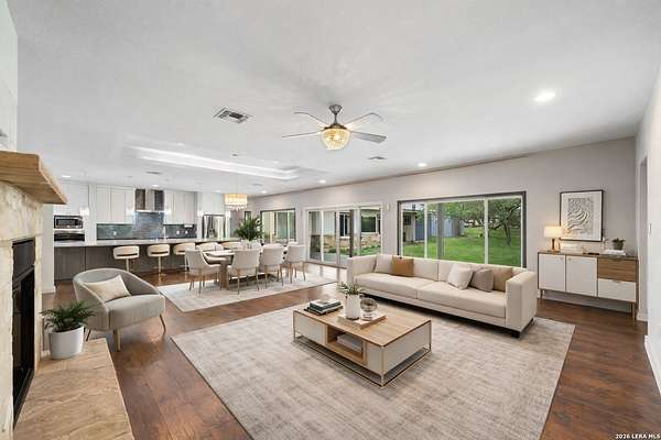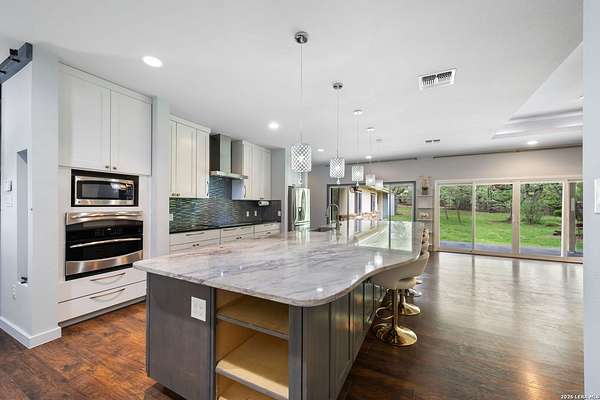 Modern Luxury on 1.66 Acres - City Living with a Country Feel!! Welcome to this 5-bedroom, 5.5-bathroom custom-built contemporary home on an incredible 1.66-acre lot nestled in a serene, country-like setting-yet ideally located in the heart of the city. This one-of-a-kind property offers the perfect blend of privacy, nature, and convenience, with easy access to the Medical Center, Loop 1604, IH-10, and Loop 410. Enjoy an active lifestyle with a one-mile neighborhood loop ideal for walking or biking, nearby wildlife sightings, a peaceful creek, and direct proximity to OP Schnabel Park featuring miles of trails, playgrounds, and YMCA amenities. Framed by mature oak trees, the home welcomes you with an inviting front porch and a stunning 8-foot entry door that sets the tone for its sophisticated yet warm design. Inside, an expansive open-concept layout is filled with natural light, highlighted by wall to wall windows and a striking brick fireplace with custom bench seating. The show-stopping kitchen is truly the heart of the home, featuring an impressive 18-foot granite island, abundant cabinetry, built-in appliances, and designer pendant lighting-perfect for entertaining on any scale. The seamless flow between the living, kitchen, and dining areas creates an ideal space for hosting holidays and special gatherings. Step outside to a sprawling covered porch that extends the full length of the living and kitchen areas, offering a true indoor-outdoor living experience. The private primary suite is a retreat of its own, complete with direct access to a serene deck-perfect for morning coffee, workouts, or unwinding among the trees. This spacious layout offers exceptional flexibility. Three bedrooms are equipped with mini-split systems and are Airbnb-ready, while one has been thoughtfully converted into a private suite with its own full kitchen and bath-ideal for multigenerational living or income-producing opportunities. Additional highlights include a beautifully designed utility room with sink, extensive storage, and striking barn doors, as well as a unique hallway library space that adds charm and character. The expansive 1.66-acre lot offers endless possibilities-whether you envision a pool, garden oasis, additional structures, or simply room to roam and enjoy the outdoors. A rare opportunity to own a distinctive property that combines modern design, functionality, acreage, and lifestyle versatility in an unbeatable location. Serious buyers and agents are encouraged to reach out directly for additional details, including the seller's disclosure and offer information. A rare opportunity to own a distinctive property that combines modern design, functionality, acreage, and lifestyle versatility in an unbeatable location.