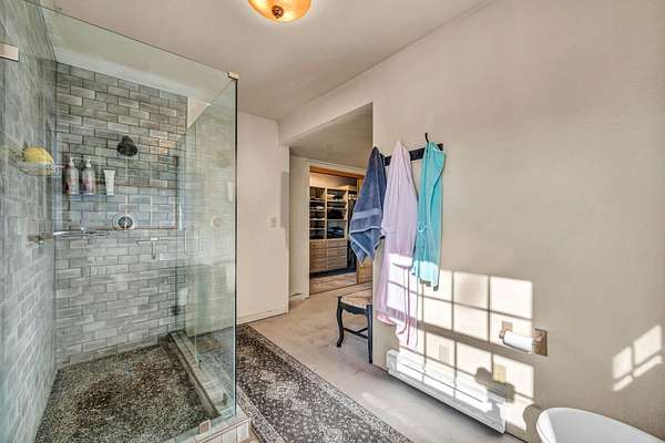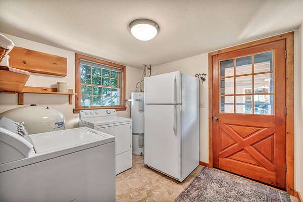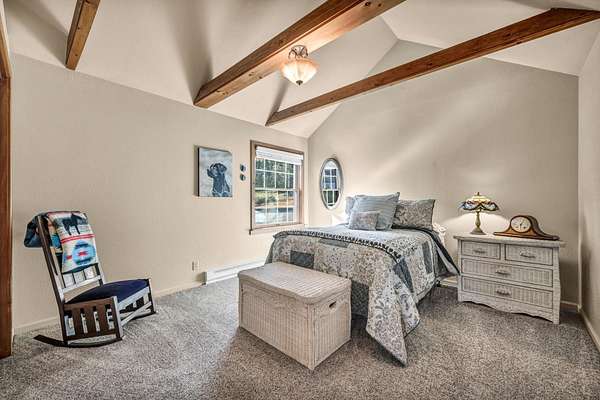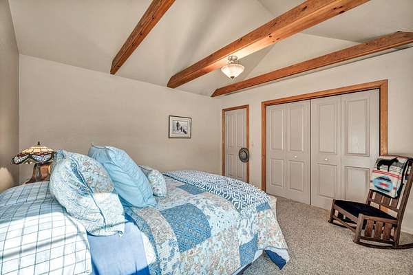 - Bath in Primary Bedroom, Electric Range Connection, Open Beams/Beamed Ceailings, Stall Shower, Tub Shower, Utility Room, Vaulted Ceiling(s), Walk-In Closet(s), Window Treatments