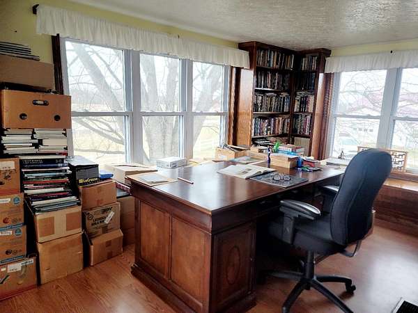 Experience rustic charm and Amish craftsmanship on this scenic acreageperfect for a home, hobby farm, or rural retreat. This well-maintained, expanded farmhouse (~3,128 sq ft) features 5 beds, 2.5 baths, offices, attached greenhouse, fireplace/wood stove, metal roof, and updated baths. Built 1977, expanded ~2018; solar-powered (easy grid reconnect) with diesel backup. Spacious kitchen w/ walk-in pantry & views; main level: 2 beds, 1.5 baths, den; upper: loft, large office, 3 beds, full bath, tiled balcony overlooking gardens/pasture. Versatile barn w/ concrete floors, overhead doors, hayloftideal for garage/stalls/storage. Rear 3+ acres for grazing/hunting w/ pond & deer corridor (great hunts); potential for guest house/workshop. Minutes from Vevay & Ohio River for conveniences. Here are visuals of similar Amish-style farmhouses, barns, and pastures in southern Indiana's Switzerland County area.
