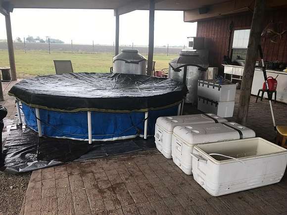 This unique shrimp farm is an opportunity for a proven business venture or an exceptional recreational outdoor oasis. Imagine a cash-flowing outdoor business or a turn-key personal outdoor recreation paradise for fishing, duck hunting or anything you could dream up! The property consists of 3 ponds, each 7 acres with an avg depth of 6ft. Each pond is equipt with 6 docks, a water valve, a cement floodgate for harvesting and emptying of the ponds, 8 electric 2 hp aerators, 4 electric 10 hp aerators, and 1 large hp aerator, and 12 trays for food sampling. All ponds have electricity. The property is equipped with a backup diesel generator capable of holding the entire 198 hp of the 3 ponds. Each pond has a motion sensor along the perimeter. Water is provided by 2 wells, each 1000ft deep and come with 40 hp water pump engine and a submergible 6-inch water pump. Other Improvements: 2 bed, 2 bath ranch house, covered parking, storage building (50ft x 60ft) with a height of 13ft and 15ft.
