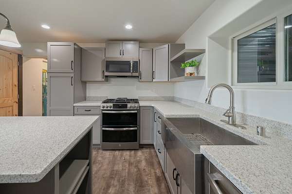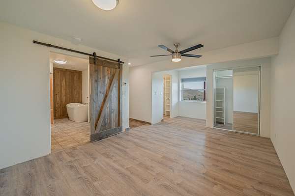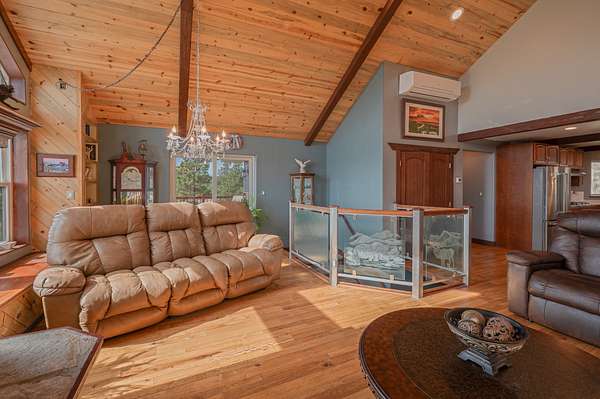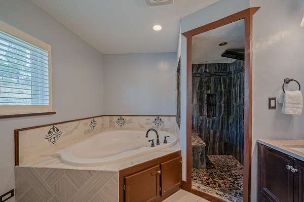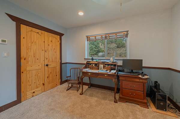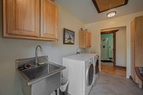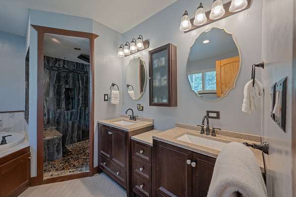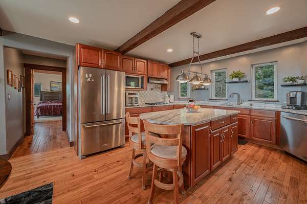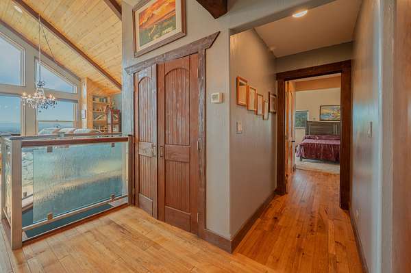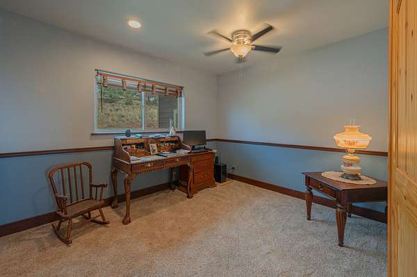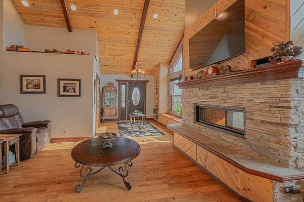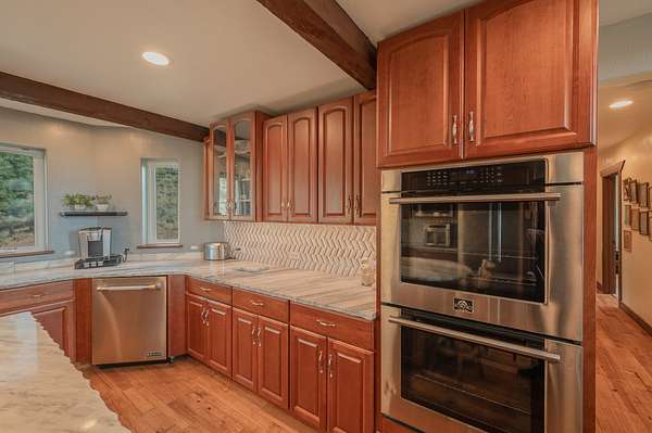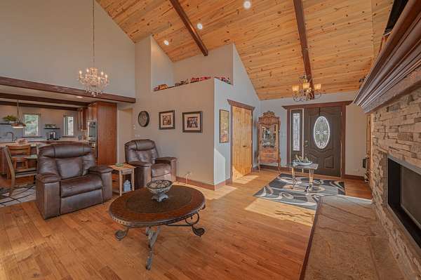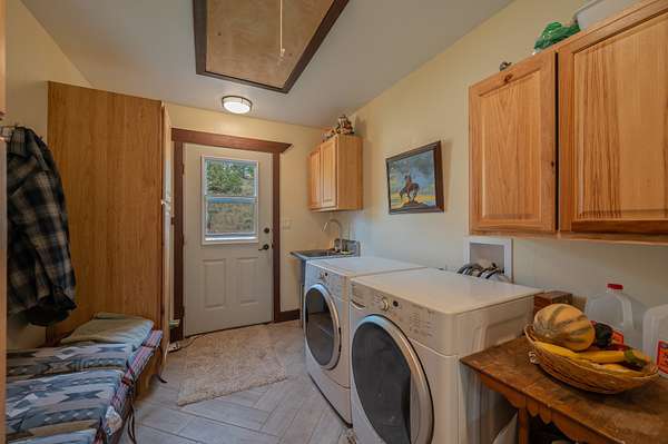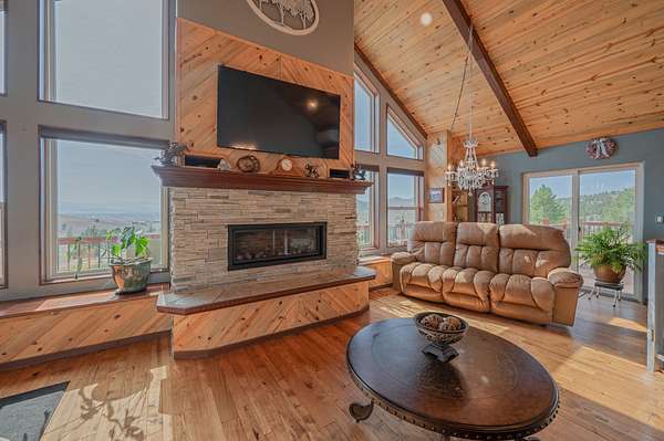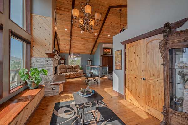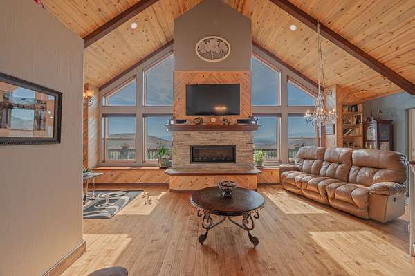 This 20-acre Woodland Hills retreat offers privacy, modern comfort, and incredible valley views. The 6 bedroom, 4 bathroom home can function as a spacious single-family residence or as two separate living spaces. The walk-out basement includes a second kitchen and a potential 3 bedroom, 2 bathroom rental setup. Vaulted ceilings and expansive windows highlight the views from the top floor, while the main kitchen features granite counters, soft-close cabinets, and a double oven. The primary suite offers a jacuzzi tub, walk-in shower, and double vanity. Enjoy peaceful mornings on the wraparound deck or walking through the mature trees throughout the property.