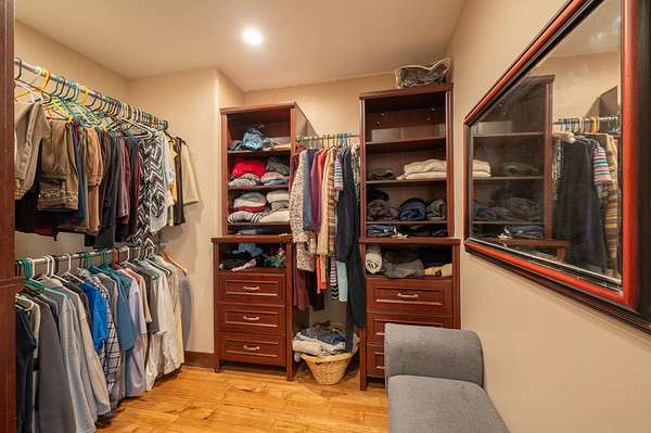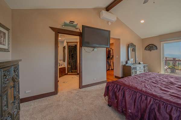 - Fireplace, Main Level Primary, Vaulted Ceilings, Walk In Closets